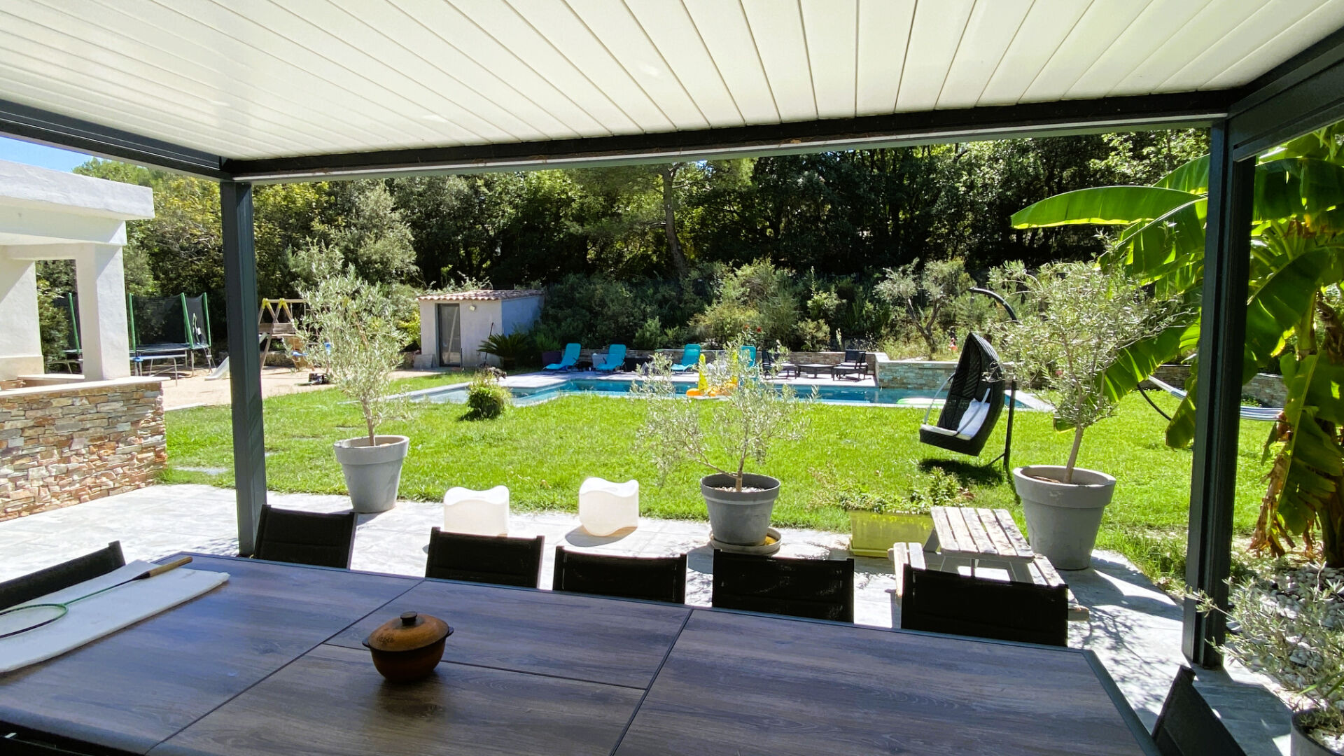 Le terrain de 4000m² est entièrement clos et offre un espace de stationnement de plusieurs véhicules, une piscine traditionnelle, un espace potager et un jeu de boules. La terrasse est équipée d'une pergola bioclimatique automatique, éclairée et dotée de rideaux. Modernité, qualité et calme caractèrisent cette propriété. Réf 0730