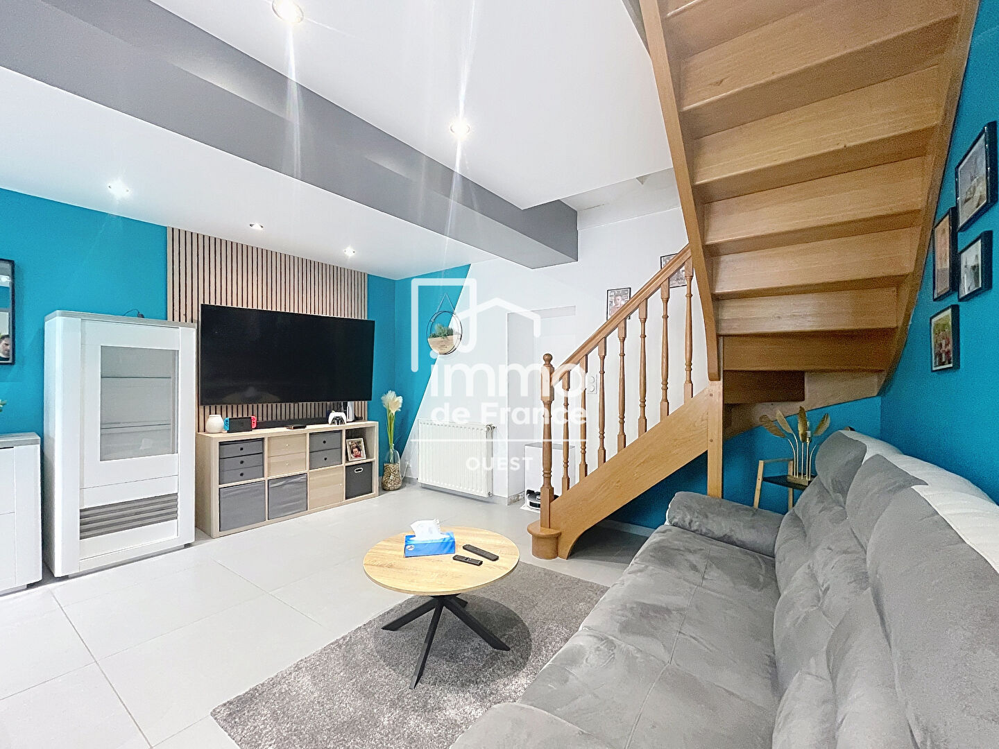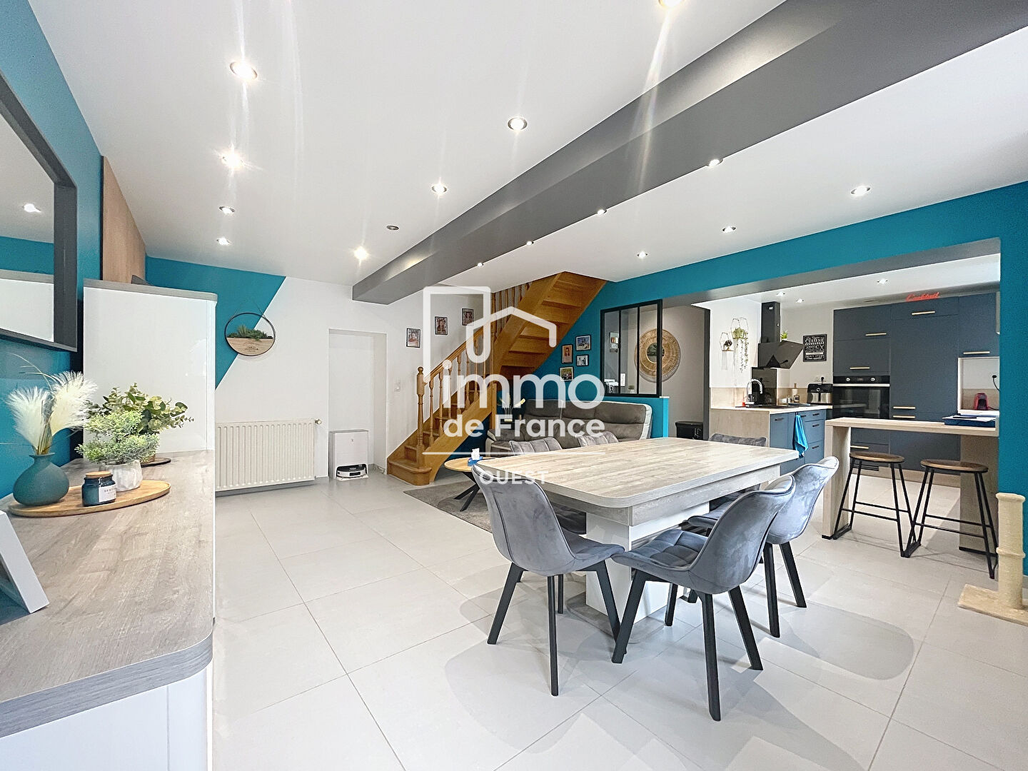 Dès l'entrée, le salon/séjour vous accueille avec son accès direct à la cuisine ouverte, entièrement aménagée et équipée.
