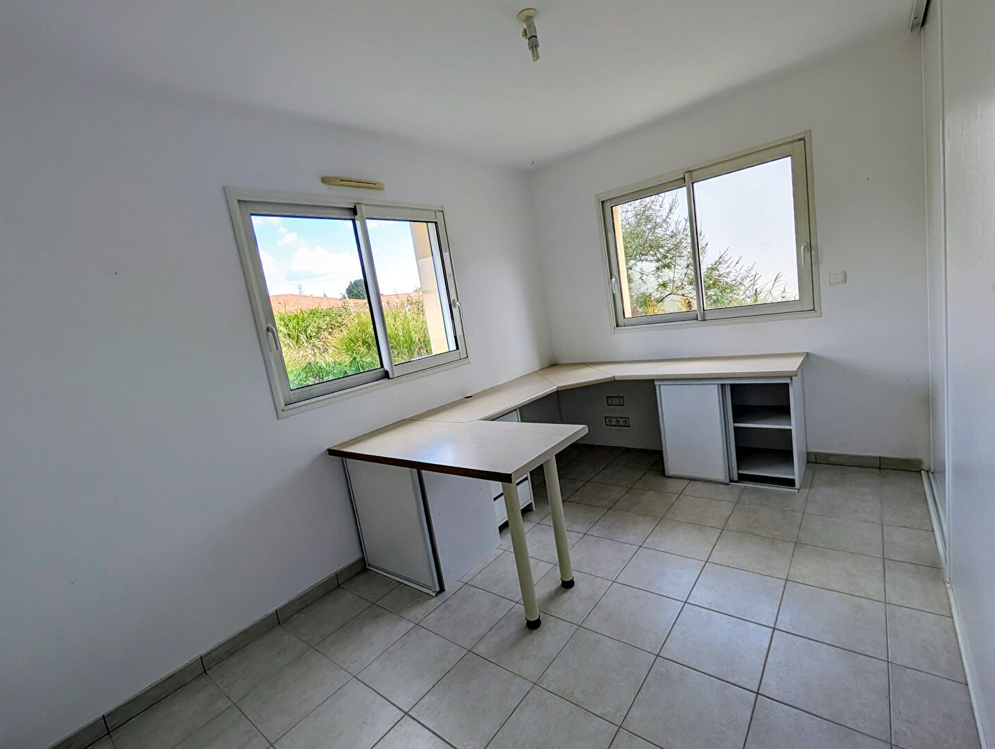 La vie peut se faire de plain-pied, la maison propose une belle pièce de vie avec cheminée insert double foyer ouvrant sur une cuisine aménagée et équipée, une chambre avec dressing, une salle de bains, un WC séparé, un bureau de 11 m² avec placard et une chambre de 10 m².