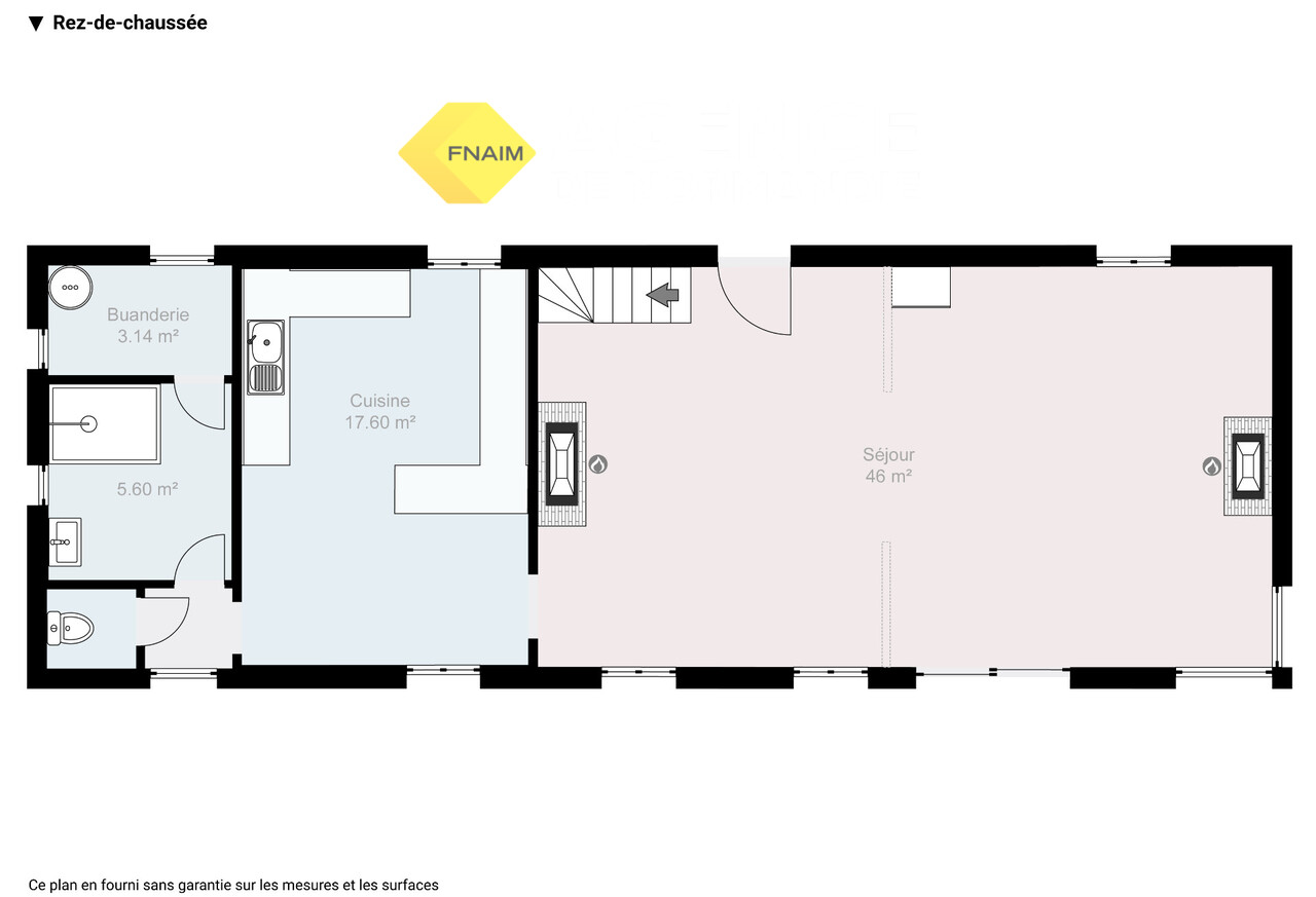 Le rez-de-chaussée vous accueil avec un vaste séjour lumineux de 46 m², agrémenté d’une cheminée et d’une baie vitrée ouvrant sur le jardin. Vous y trouverez également une cuisine contemporaine équipée, une salle de douche et une buanderie.