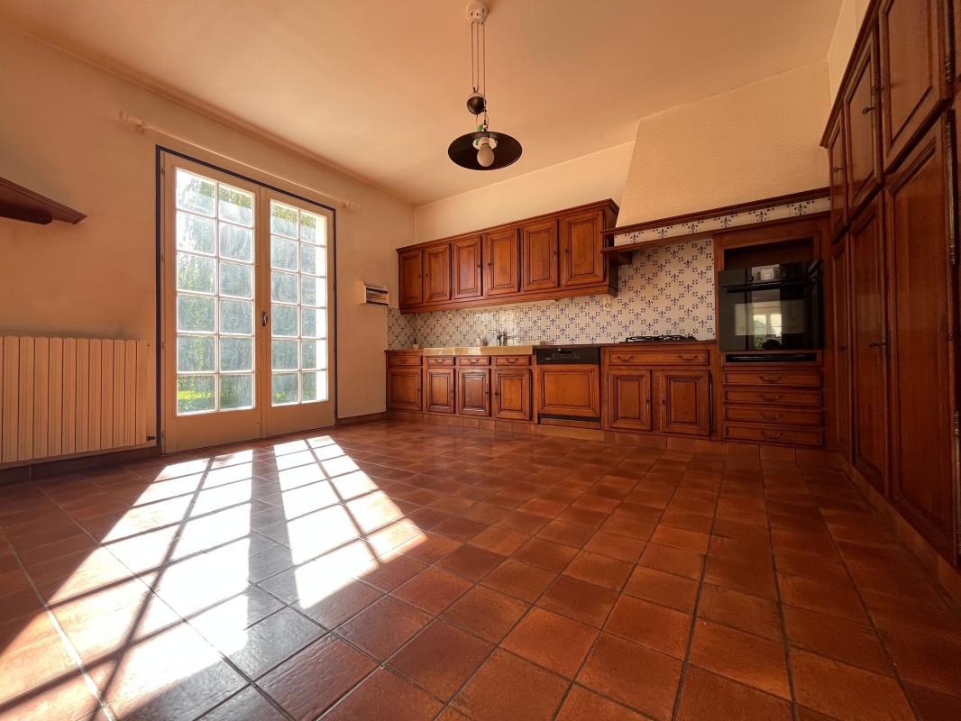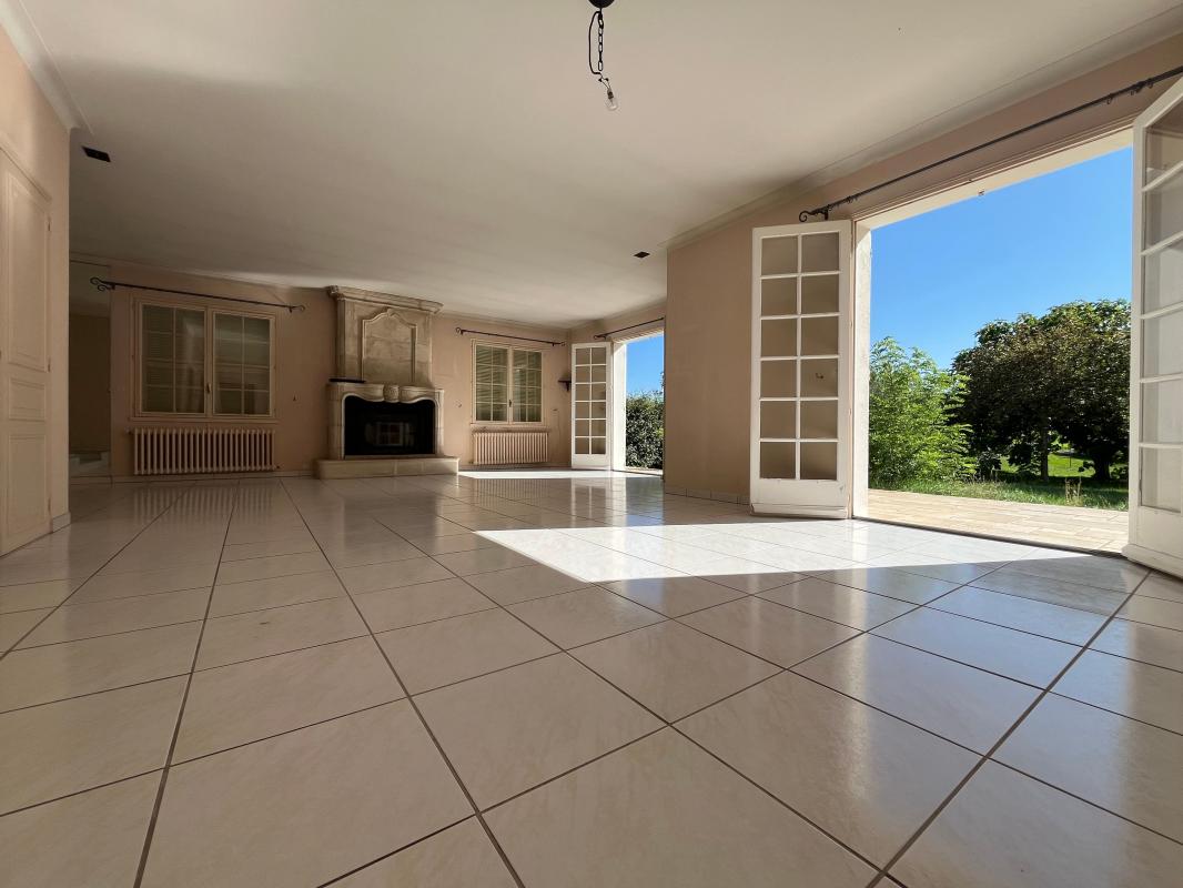 Le rez-de-chaussée se compose d'une large entrée, d'un séjour lumineux de 70 m² avec cheminée en pierre, d'une cuisine indépendante, d'une chambre, ainsi que d'une suite parentale avec salle d'eau et WC.