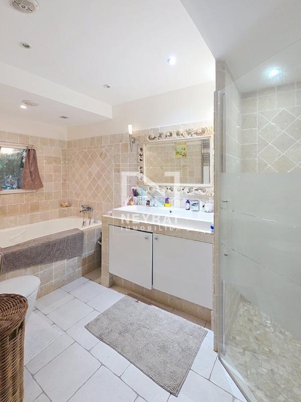 Le rez-de-chaussée, accueille une chambre , un coin cuisine aménagé et équipé, une vaste salle de bains avec douche et grande baignoire jacuzzi, ainsi qu'une pièce polyvalente idéale en bureau ou chambre d'appoint.