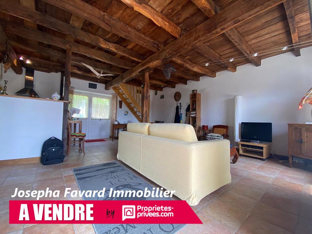 - Grande pièce de vie lumineuse de 50 m² avec poutres et belle hauteur sous plafond