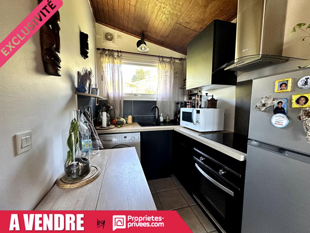 Cette maison mitoyenne de plain pied de 33 m², est composée d'un séjour avec cuisine ouverte, d'une chambre, d'une salle d'eau, WC ainsi qu'une terrasse, sur un terrain de 375 m² entièrement Clôturé. Chalet de 10m² . Jardin paysagé et espace potager .