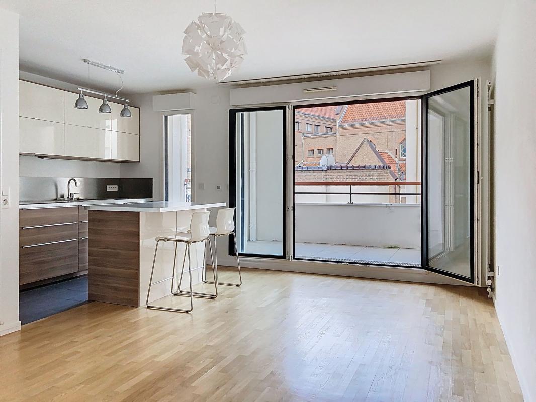 Cet appartement de 68 m² offre un plan classique en double exposition. il comprend, une entrée avec penderie (6.06 m²), un séjour avec cuisine ouverte équipée (26.52 m²) prolongé d'un généreux balcon dinatoire (7.26 m²) en exposition sud-ouest. La partie nuit comprend une salle de bains, un wc avec coin buanderie et 2 chambres (12.39 et 11.09 m²) au calme en coeur d'ilot.