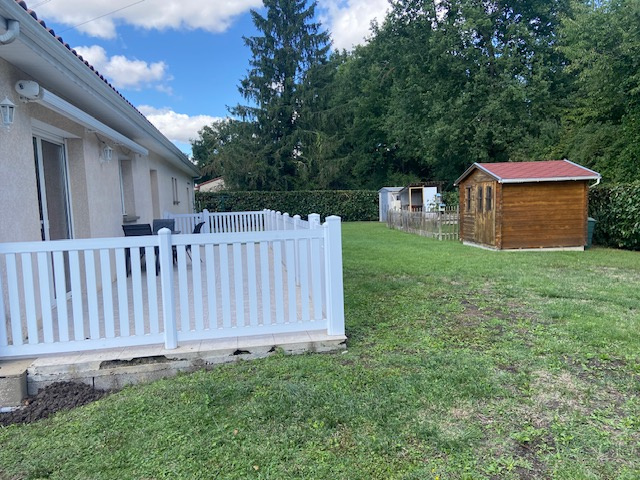 Le grand garage communiquant avec la maison est un atout important ,un cabanon de jardin est également en place.