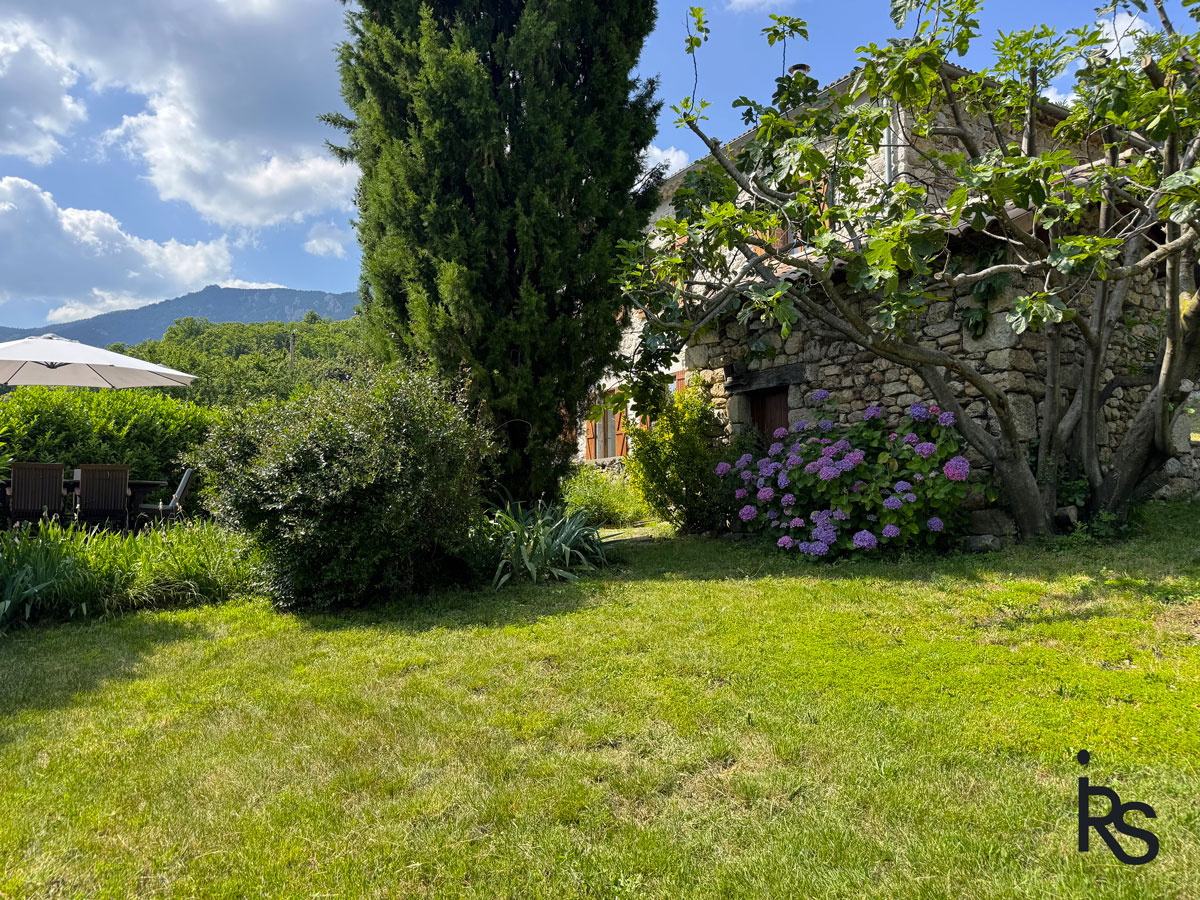 Une maison de charme en pierre de 148 m2 habitables rénovée avec une vue imprenable, un jardin paysagé, arboré de 2965 m2 et piscinable sur la parcelle de la maison. Elle comprend au rez-de-chaussée un vaste séjour / salle-à-manger, une cuisine équipée, un W.C. et un débarras ; au premier étage 4 chambres dont l'une avec salle d'eau et une salle de bains. En annexe, un grand garage, un atelier, plusieurs caves et un ancien séchoir à châtaigne. Chauffage par pompe à chaleur air/air avec en appoint un poêle à bois et des convecteurs électriques avec programmateur. Tout à l'égout.