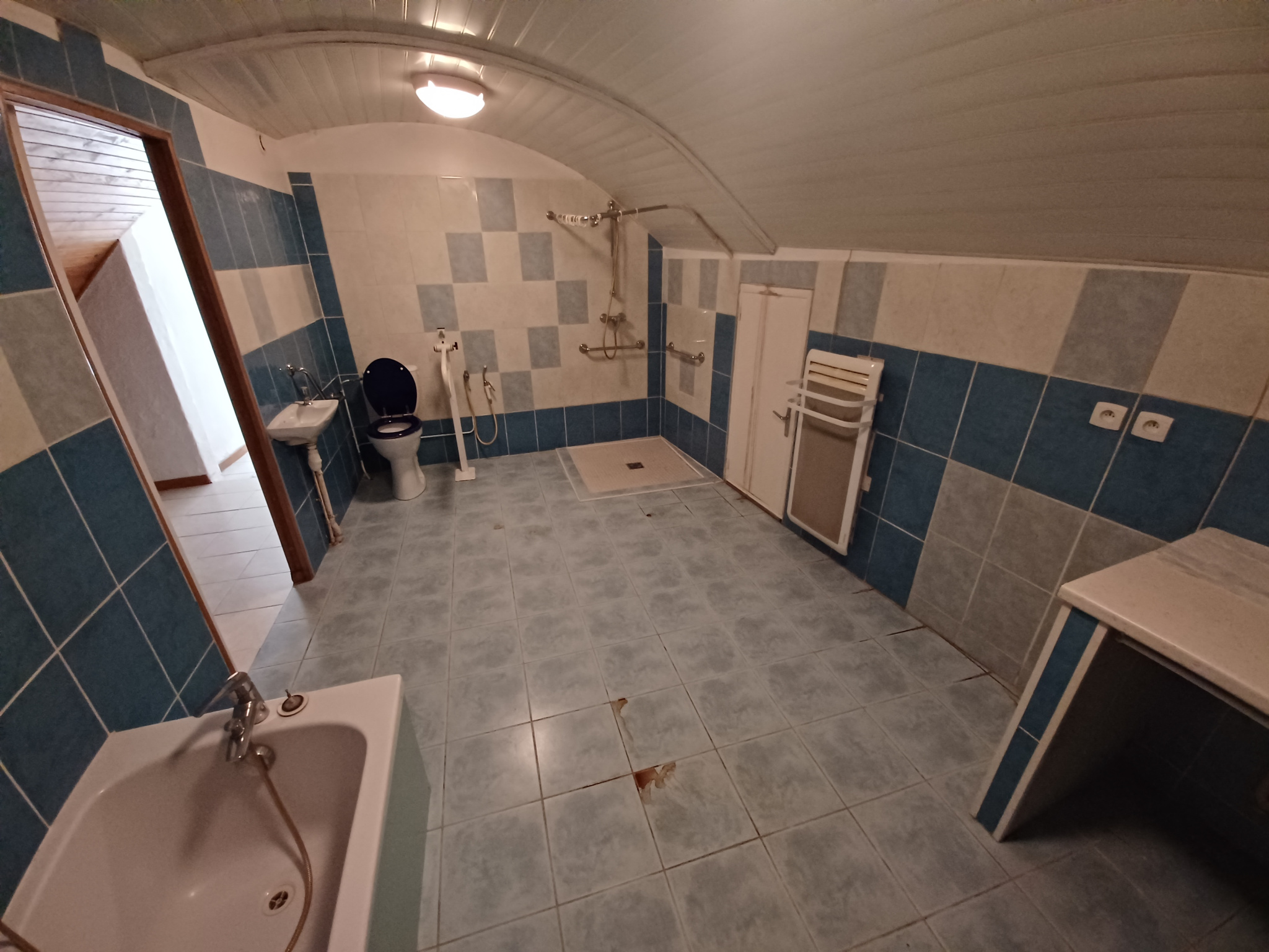 Il comprend une grande pièce à vivre d'env 29m2 avec coin cuisine, une chambre donnant sur Rue et avec placards et une autre chambre ou bureau à l'arrière avec placards, dégagement/cellier desservant salle d'eau avec douche, baignoire et WC.