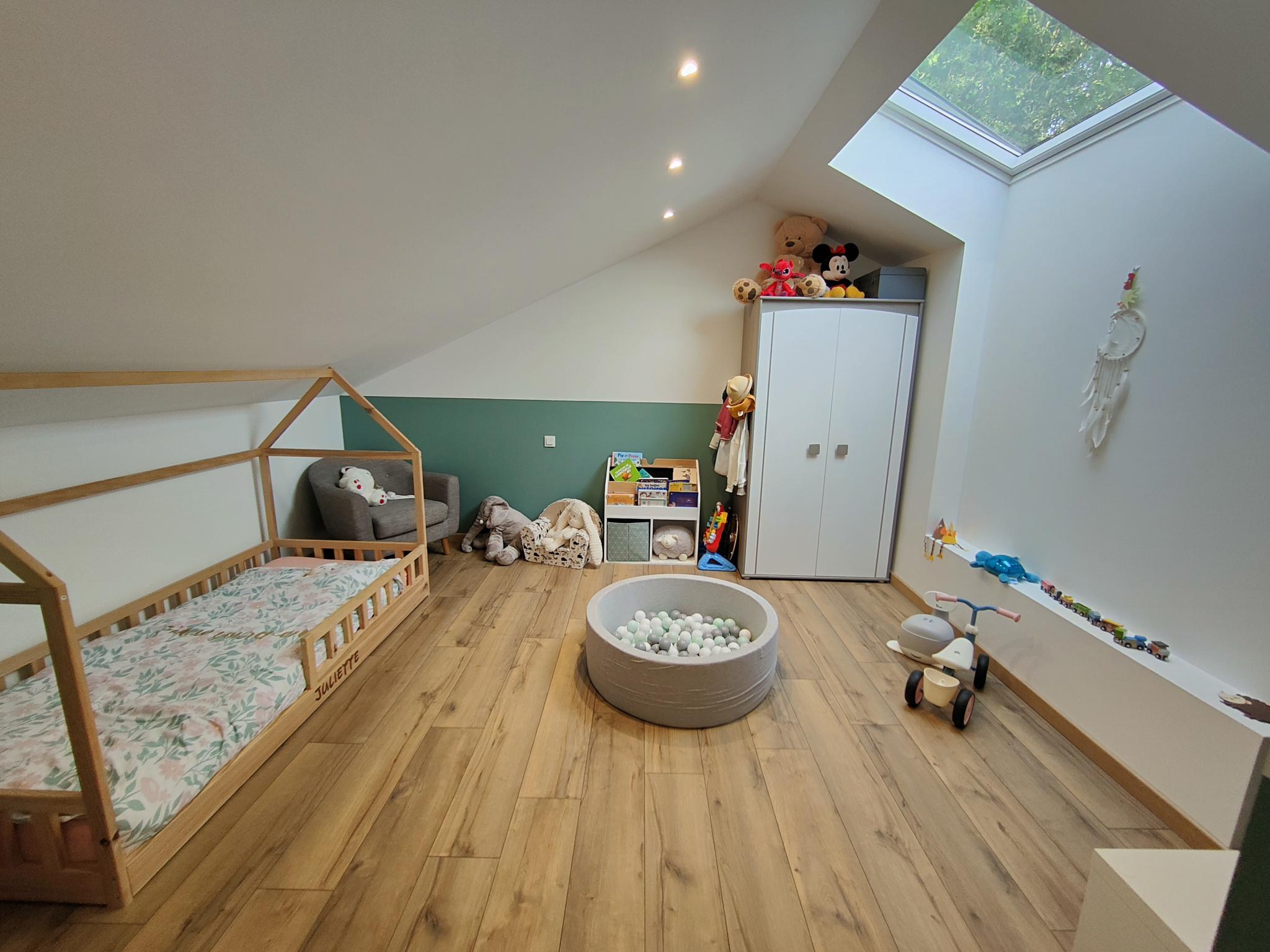 A l'étage, deux grandes chambres et une pièce de rangement.