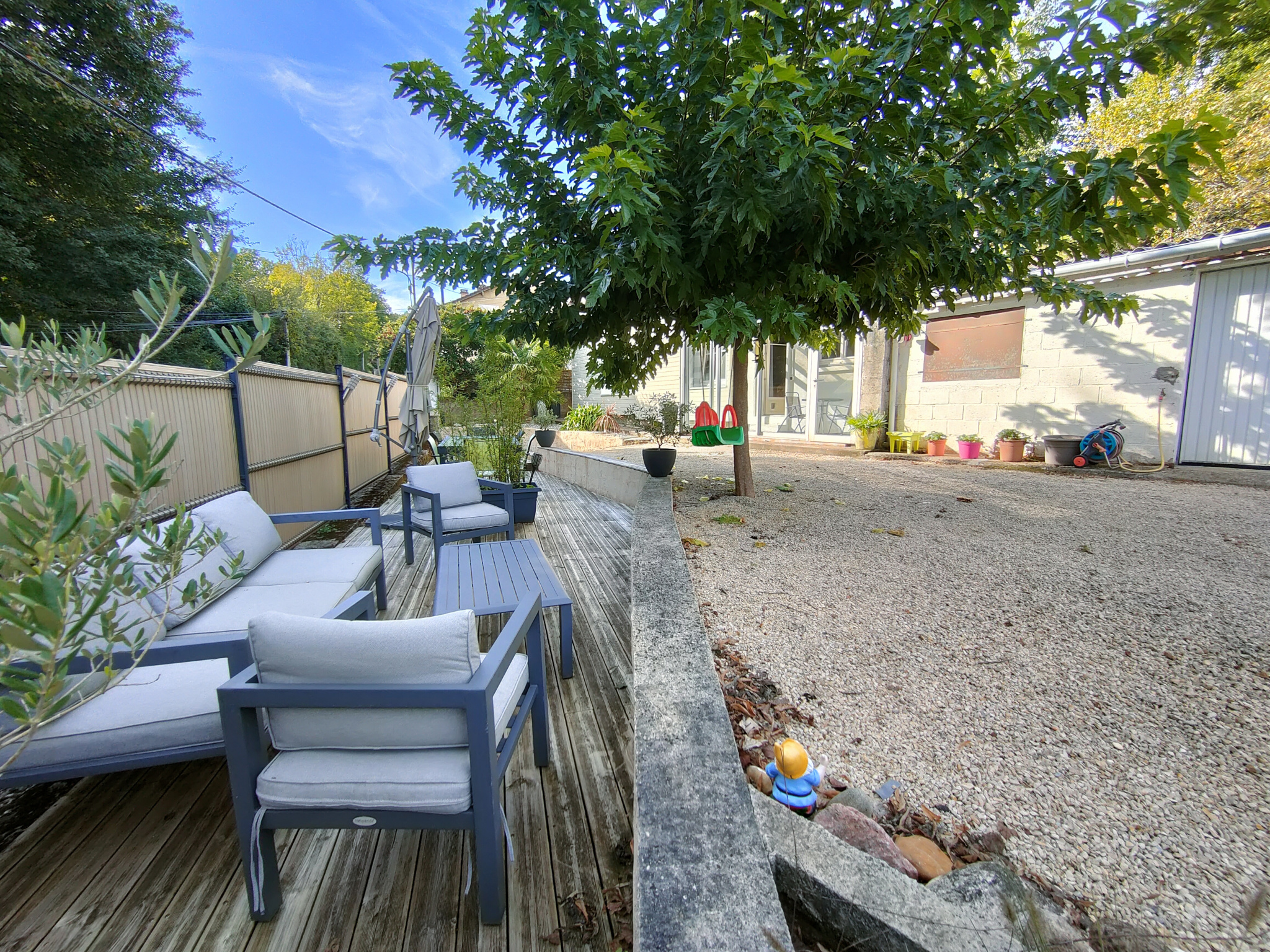 ITEUIL - Maison avec terrasse et extérieurs aménagés sur un terrain clos et arboré d'environ 800m2