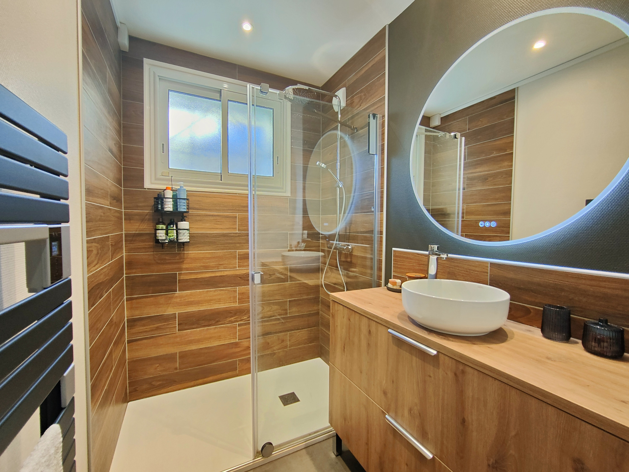 Accès par la véranda à la buanderie située dans un grand garage de 25m2.