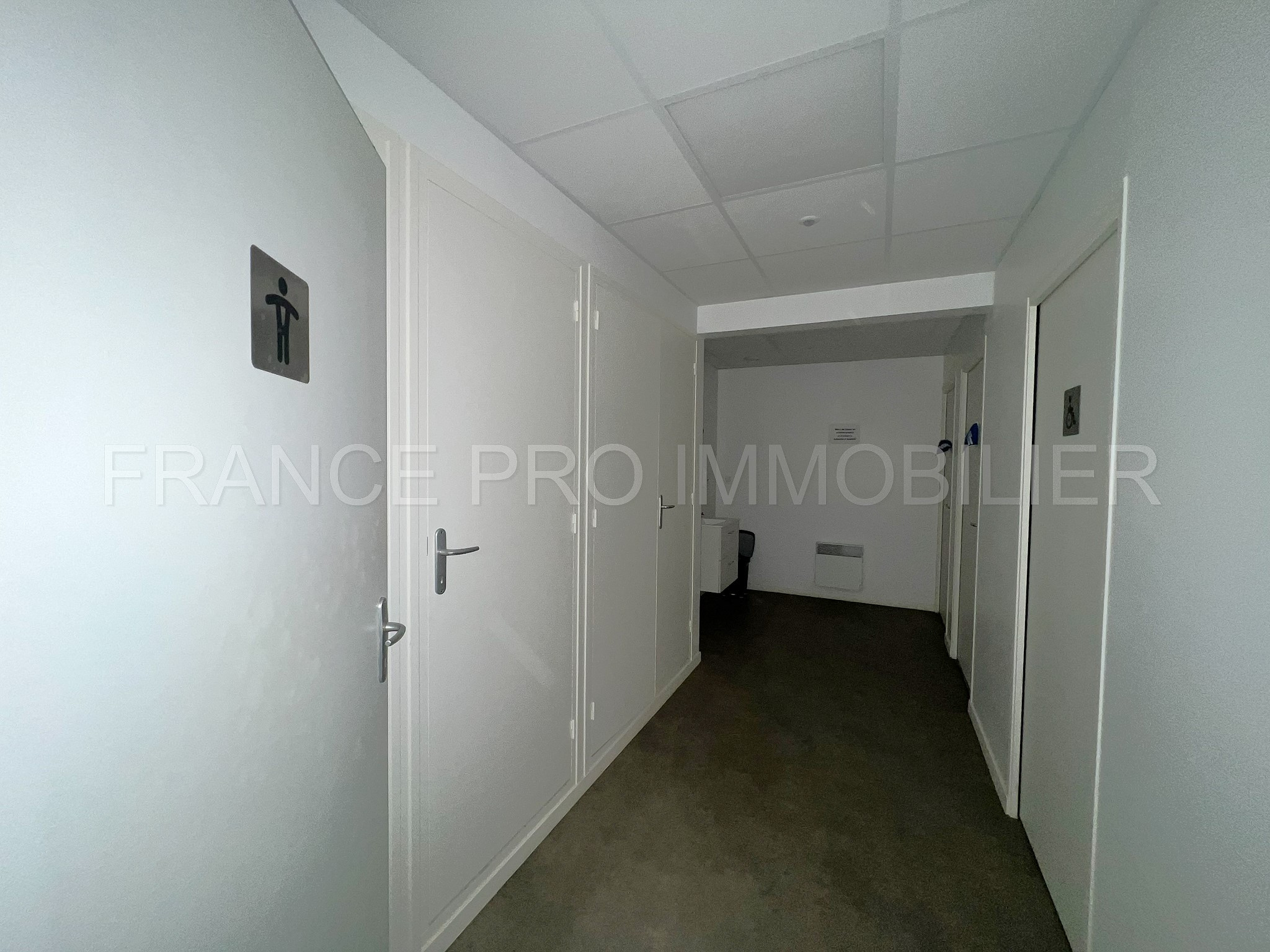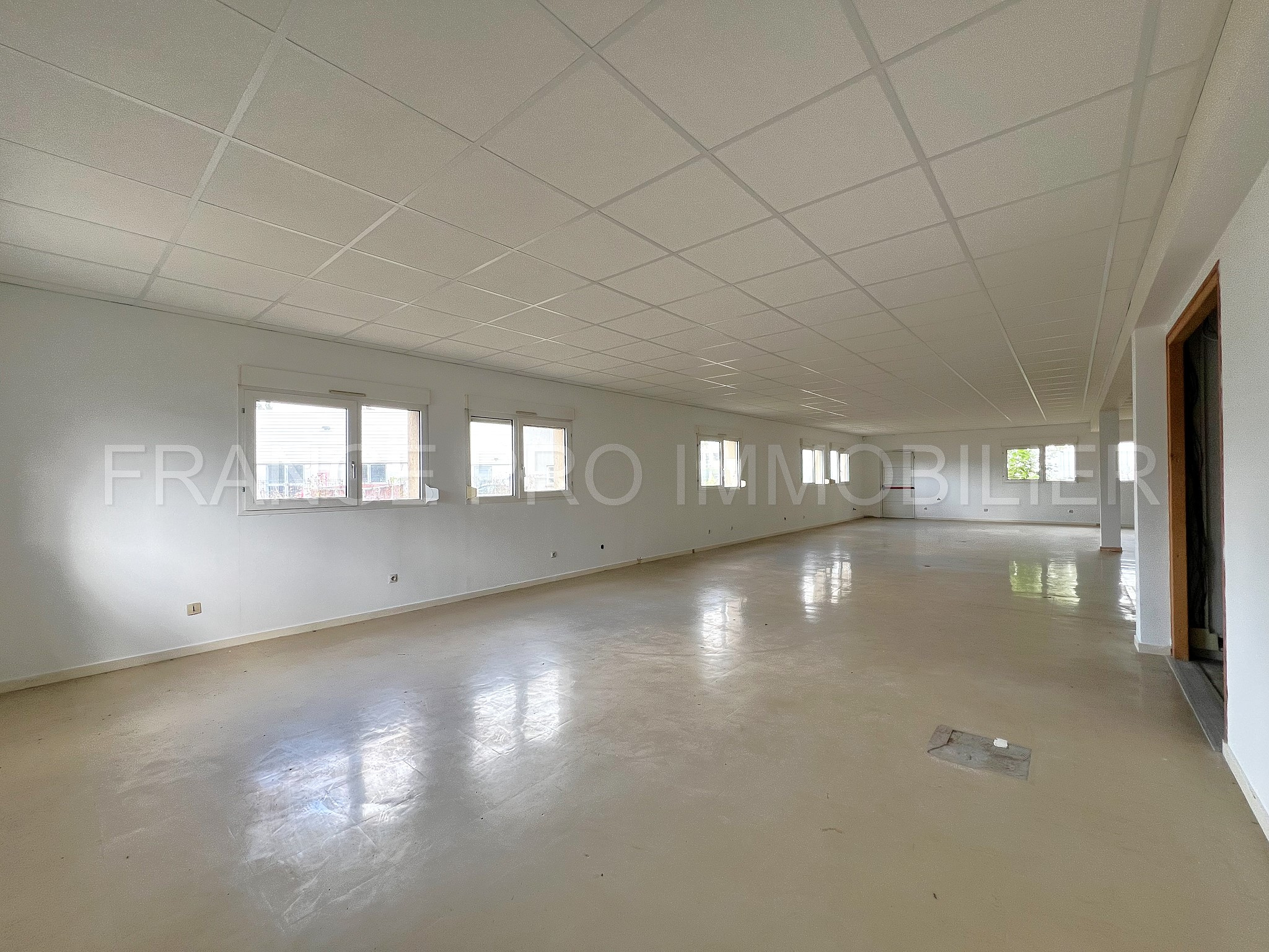 Au rdc : entrée dans un sas sécurisé, à la suite un grand hall d'accueil distribuant une surface de 515 m2 (divisible en deux parties 240 m2 et 275 m2) composée de : six bureaux, deux open-spaces, deux grandes salles de réunions, des sanitaires, cuisine, local technique et dégagements.