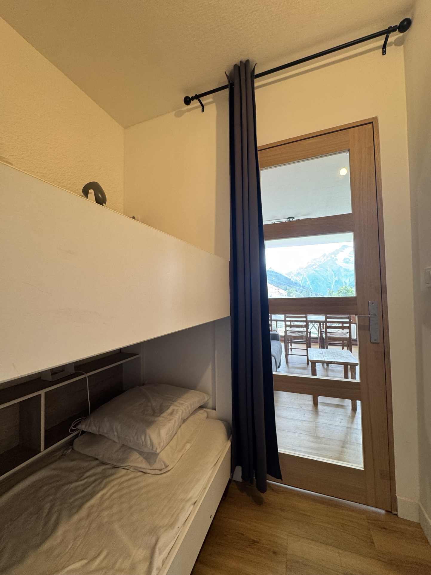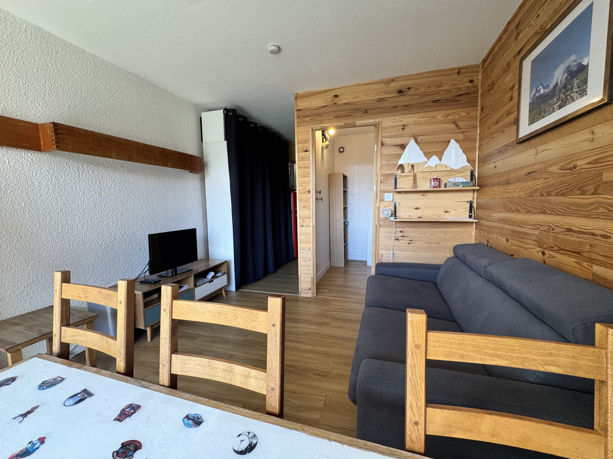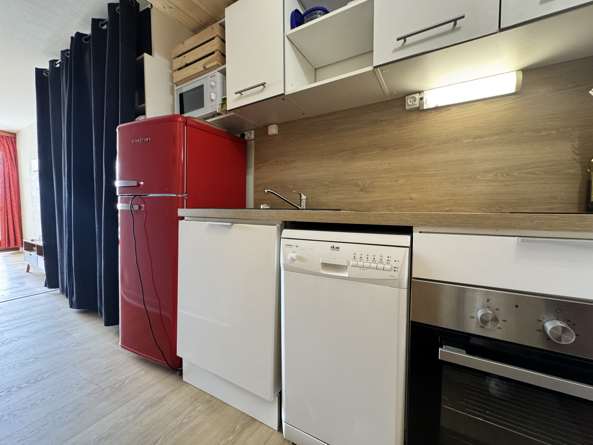 Au coeur de la station des Deux Alpes, ce studio avec coin montagne fermé offre un pied-à-terre idéal pour profiter de la montagne en toutes saisons. Situé dans une résidence dont les parties communes intérieures viennent d'être rénovées, il bénéficie d'un emplacement recherché au pied des pistes et du rassemblement ESF Belle étoile. Avec ses 26,44m2 bien agencés, il séduit par sa pièce de vie lumineuse exposée plein sud, ouverte sur un balcon grâce à une large baie vitrée, offrant un bel ensoleillement. Le coin montagne fermé avec porte vitrée crée un espace nuit cosy pour les enfants. La cuisine, refaite il y a deux ans, est parfaitement équipée pour vos séjours, tandis que la salle de bain avec WC, le grand placard de rangement et le casier à ski ajoutent au confort. Quelques finitions pourraient valoriser encore le bien. Dans cette copropriété rare en station, vous profiterez également d'une piscine chauffée l'été et d'une laverie. Que ce soit pour une résidence secondaire, un pied-à-terre ou un investissement locatif, cet appartement coche toutes les cases pour vivre pleinement l'esprit montagne.