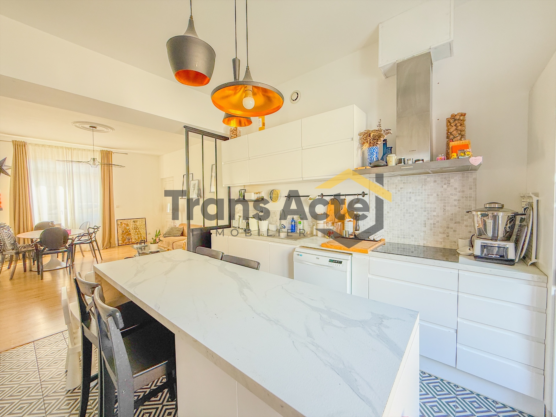Ce bien se compose d'une entrée, salon séjour chaleureux avec une belle hauteur sous plafond, cuisine équipée lumineuse avec îlot central, salle de bain et W.C séparé.