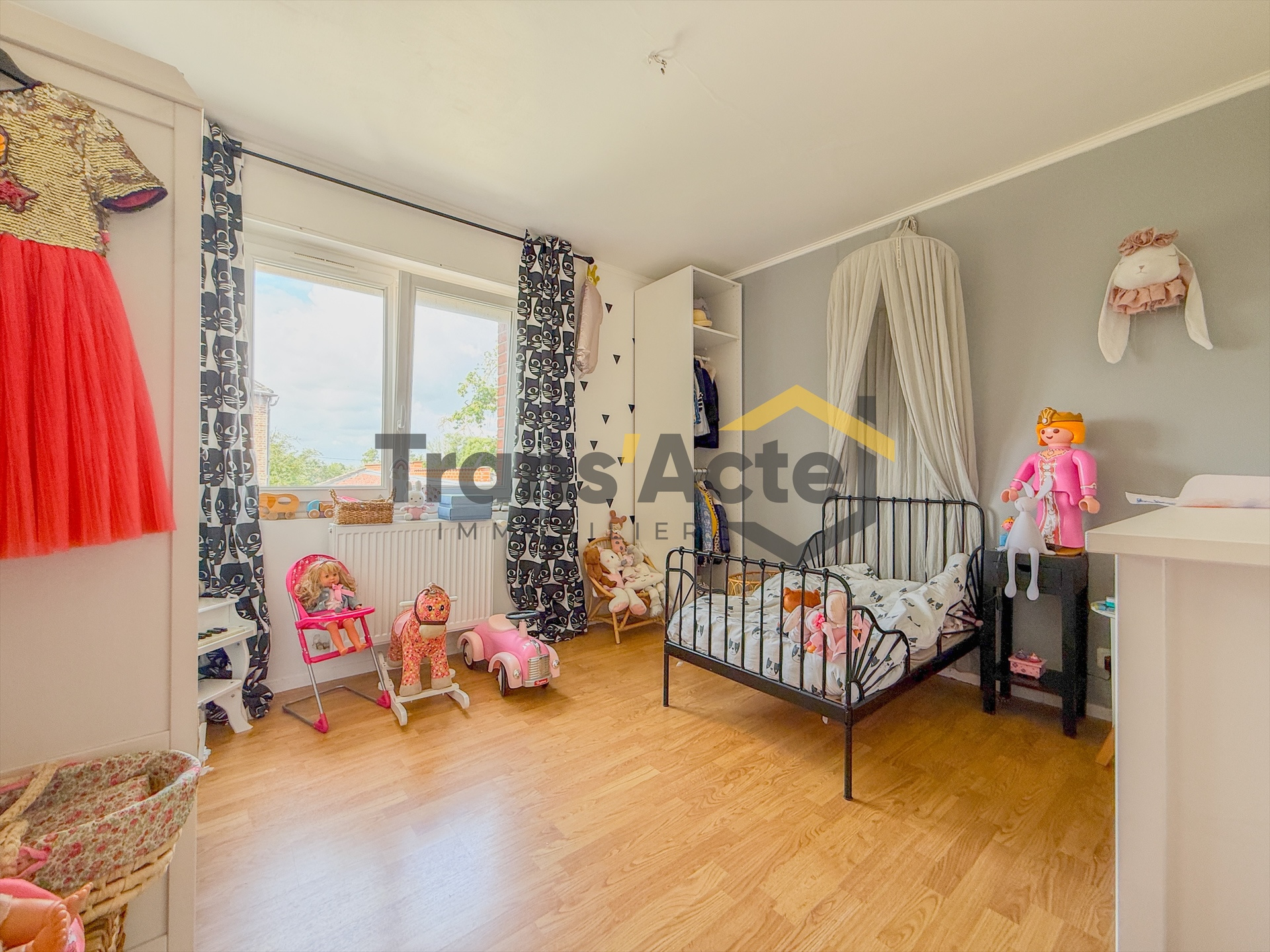 Au premier étage, un palier dessert trois chambres,