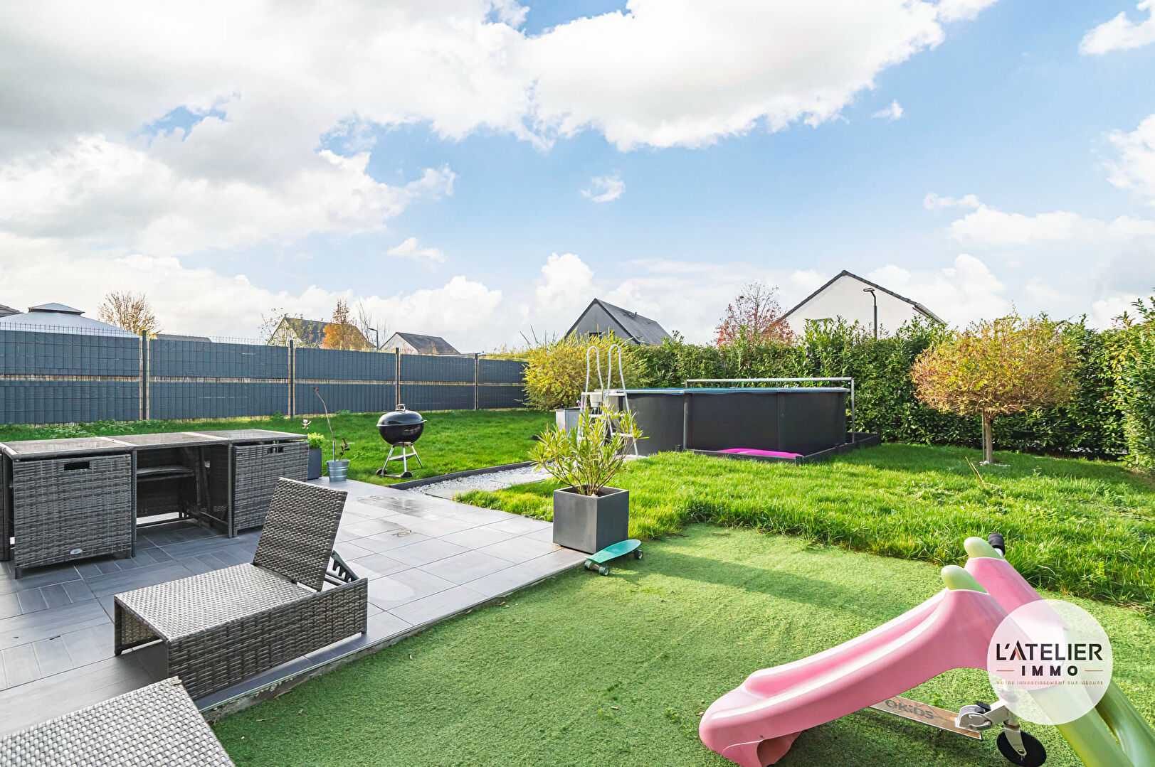 Un très beau jardin arboré, une jolie terrasse carrelée, une piscine hors sol sur dalle béton, un garage et plusieurs places de stationnement devant la maison viennent compléter ce bien.