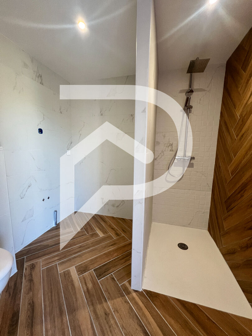 La pièce de vie vous accueille avec sa charpente apparente et une belle luminosité tout au long de la journée grâce à son exposition plein sud. Principalement de plain pied (une seule chambre à l'étage) , ce bien dispose d'un agencement très moderne. Vous y trouverez deux espaces nuits distincts où d'un coté sont installés trois chambres et une salle d'eau et de l'autre, la suite parentale avec salle d'eau et dressing ouvert sur sa propre terrasse à la vue lointaine et vallonée.