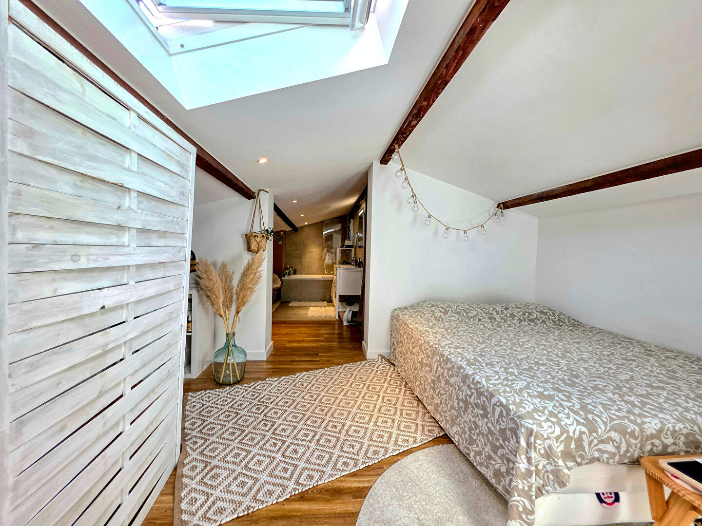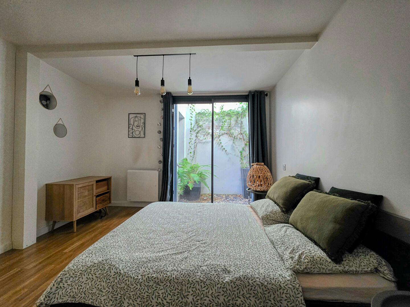 Le rez-de-chaussée se compose de deux chambres, d'une toilette, de rangements, d'une salle d'eau et d'une magnifique pièce de vie avec charpente apparente. Cette dernière donne sur un jardin intimiste exposé sud-est pour profitez des beaux jours.