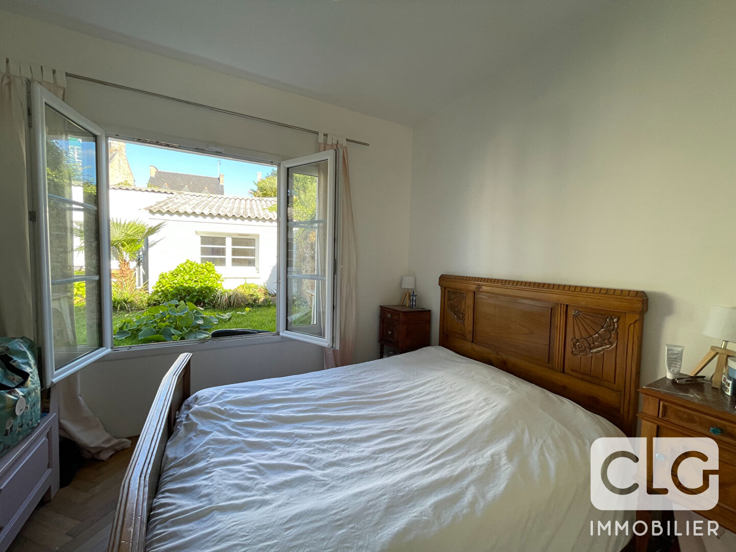 La maison propose une vie de plain-pied avec une chambre élégante accompagnée de sa salle d'eau privative, idéale pour un confort optimal.