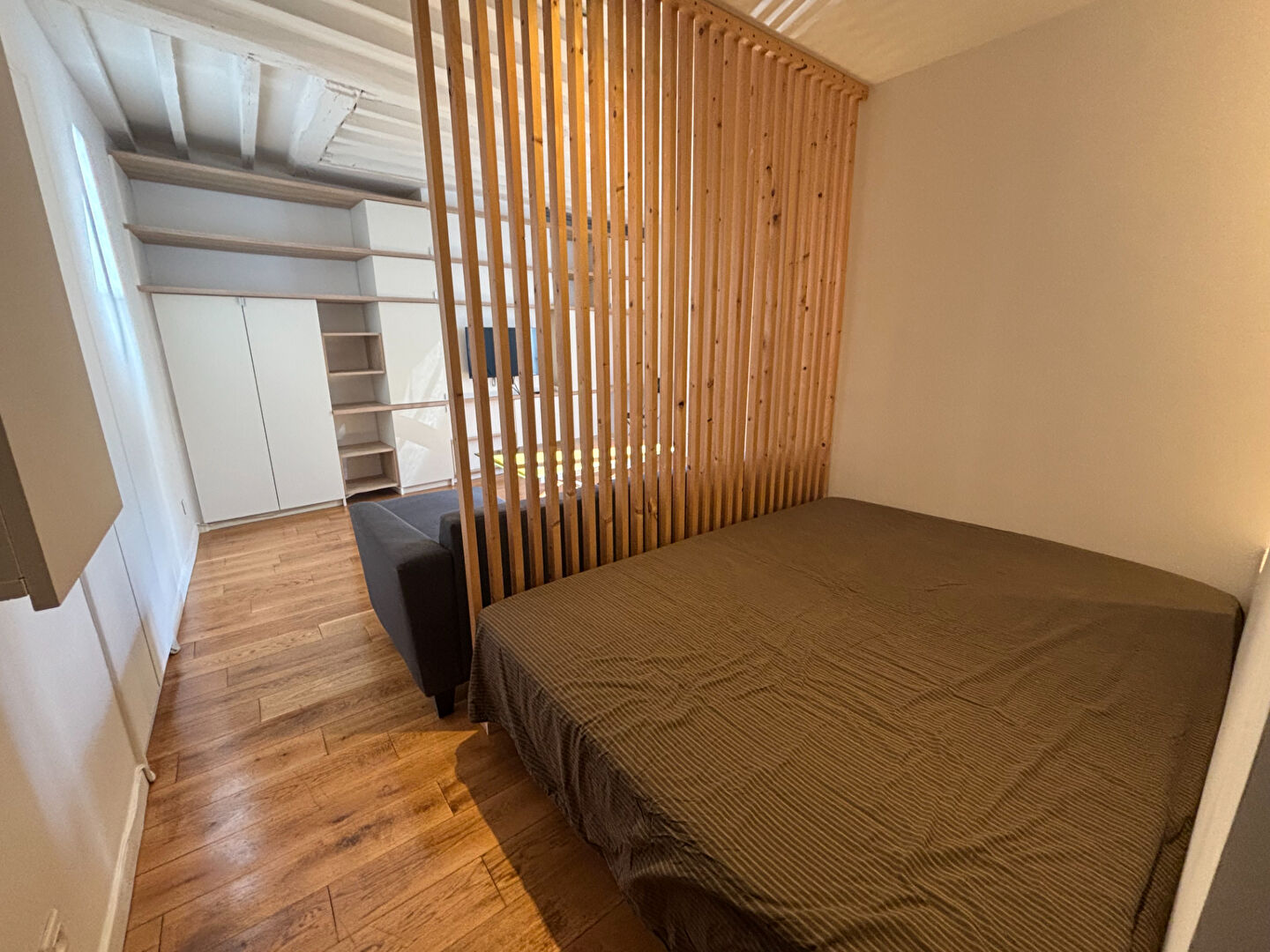 Dans une copropriété de bon standing, ce grand studio, entièrement rénové avec goût, de 25,8 m² comprend une lumineuse pièce à vivre , un coin nuit, une cuisine séparée, une salle d'eau avec W.C et de nombreux rangements.