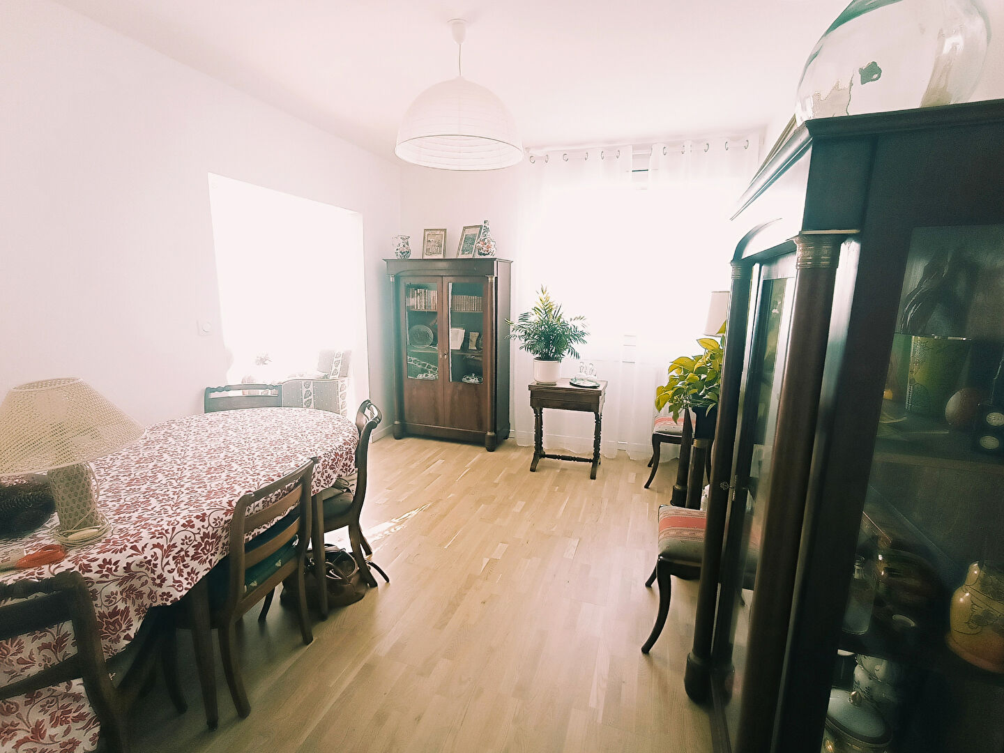 Cet appartement d'environ 90 m² est composé d'une entrée avec placard, une cuisine avec cellier, un séjour, une salle à manger, une salle d'eau avec WC, 3 chambres dont 2 avec placard, une salle de bains avec WC.