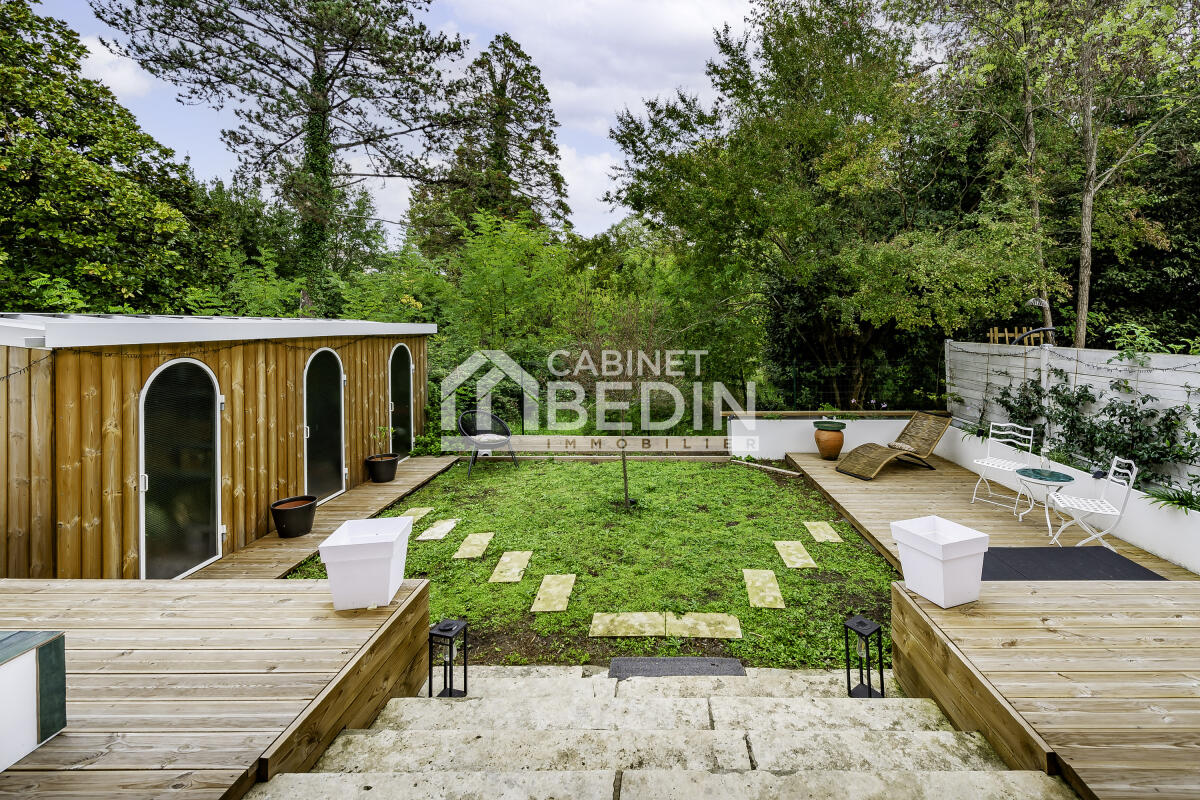 Situé au c?ur de Blanquefort, dans une charmante chartreuse, cet appartement DUPLEX agencé comme une maison, entièrement rénové vous séduira par ses prestations haut de gamme et son ambiance chaleureuse. Au rez-de chaussée, dès l'entrée, vous serez accueillis par une belle pièce de vie lumineuse (séjour-salon) et climatisée, ouverte sur une cuisine moderne et équipée, le tout donnant sur trois terrasses et un jardin privatif arboré. Le rez-de-chaussée offre également des toilettes indépendantes et un dressing pratique.