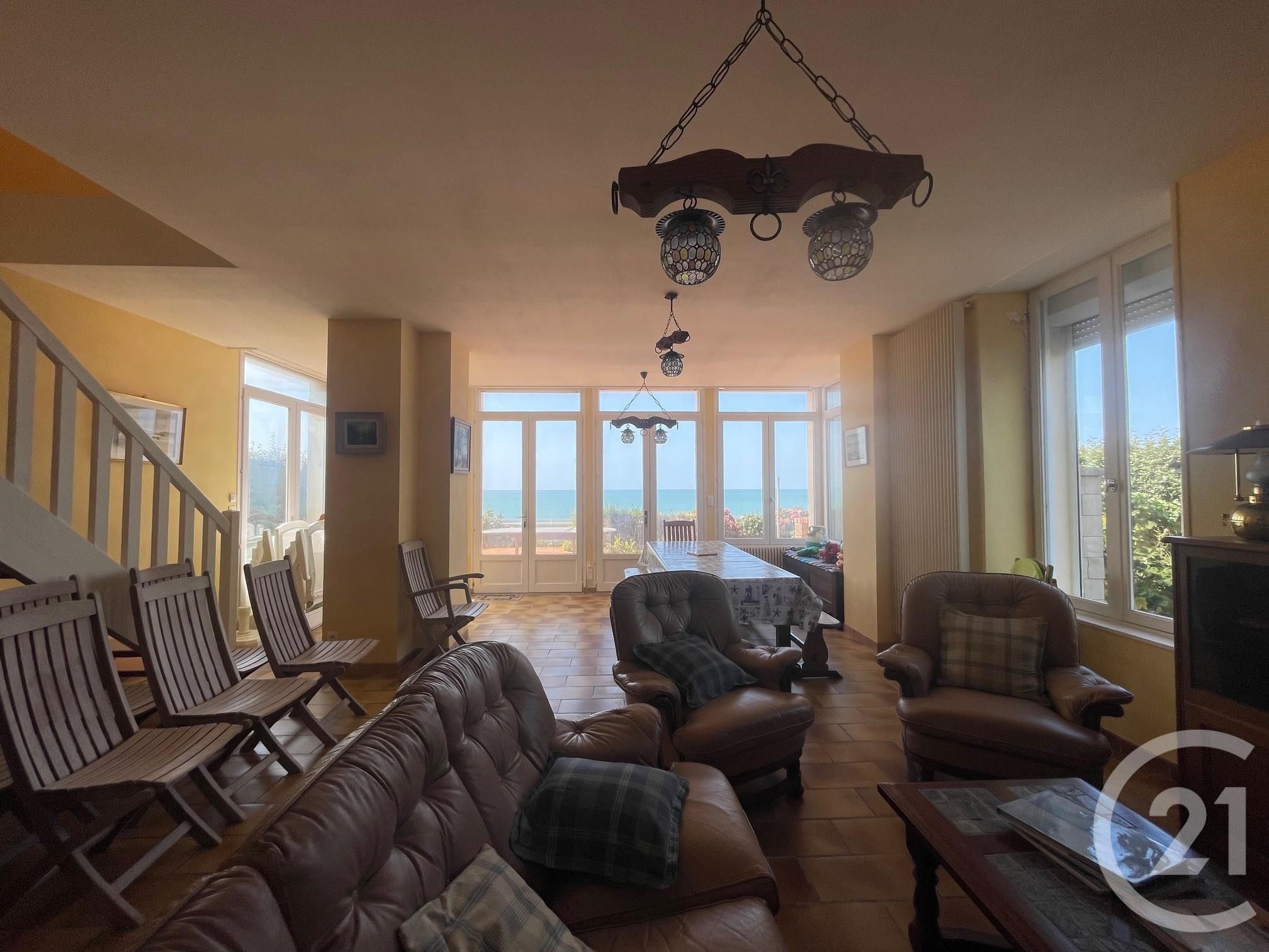 CENTURY 21 Royer Immo vous propose A JULLOUVILLE EN FRONT DE MER : Cette maison sur trois niveaux, comprenant 5 pièces principales dont au rez-de-chaussée : Une entrée avec placards, un spacieux salon / séjour donnant sur une vue mer, une cuisine indépendante aménagée et équipée, un cellier et une salle d'eau avec wc. A l'étage : Un dégagement, un couloir desservant deux chambres dont une avec terrasse, une douche avec un wc. Au second niveau : un couloir desservant deux chambres, une salle de bains et un wc. Un garage indépendant. Le tout sur un terrain clos de 564 m² environ. Prix : 999000.0 euros, Honoraires charge vendeur. Logement à consommation énergétique excessive : classe F. Montant estimé des dépenses annuelles d'énergie pour un usage standard entre 3440.0 ¤ et 4710.0 ¤, indexées à l'année 2021 (abonnements compris).