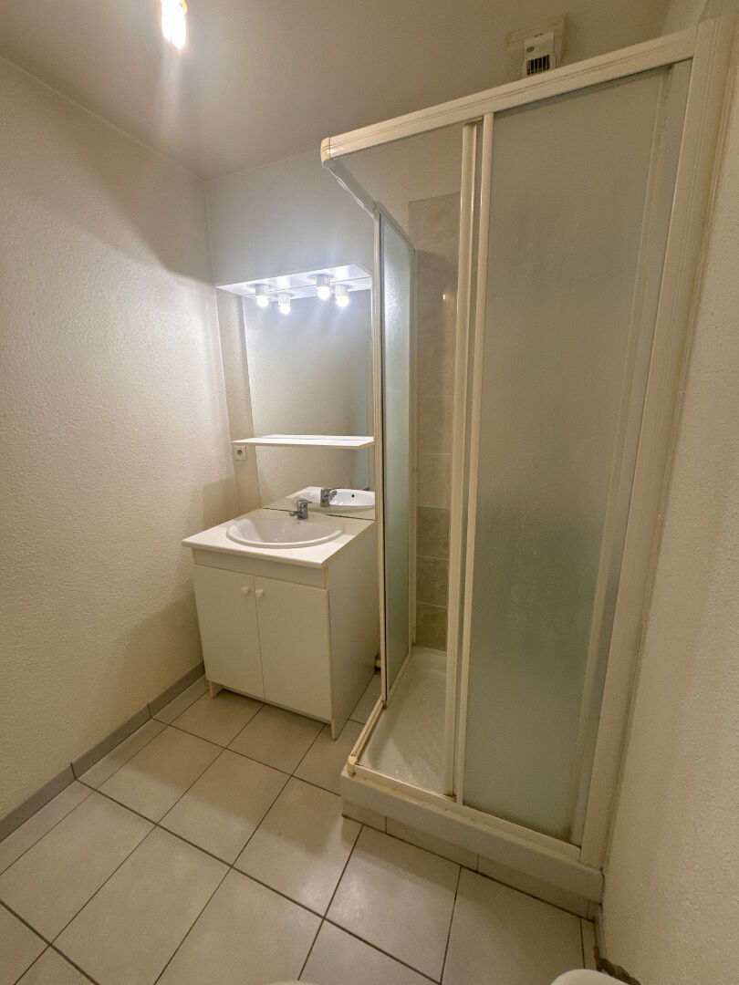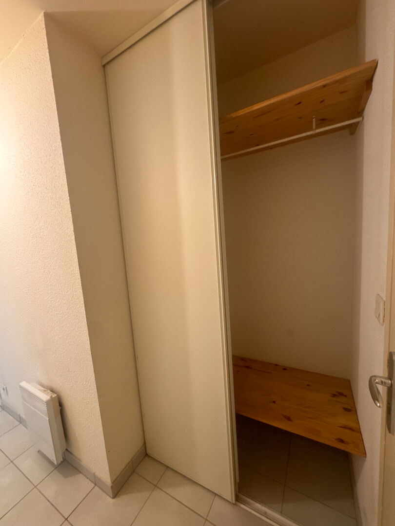 Quartier Solvardière, agréable studio sans aucun vis à vis. Doté d'une place de stationnement dédiée. Hall d'entrée avec grand placard desservant une grande pièce à vivre aménagé et équipé d'une kitchenette ainsi qu'une salle d'eau aux normes PMR avec douche, vasque et WC.