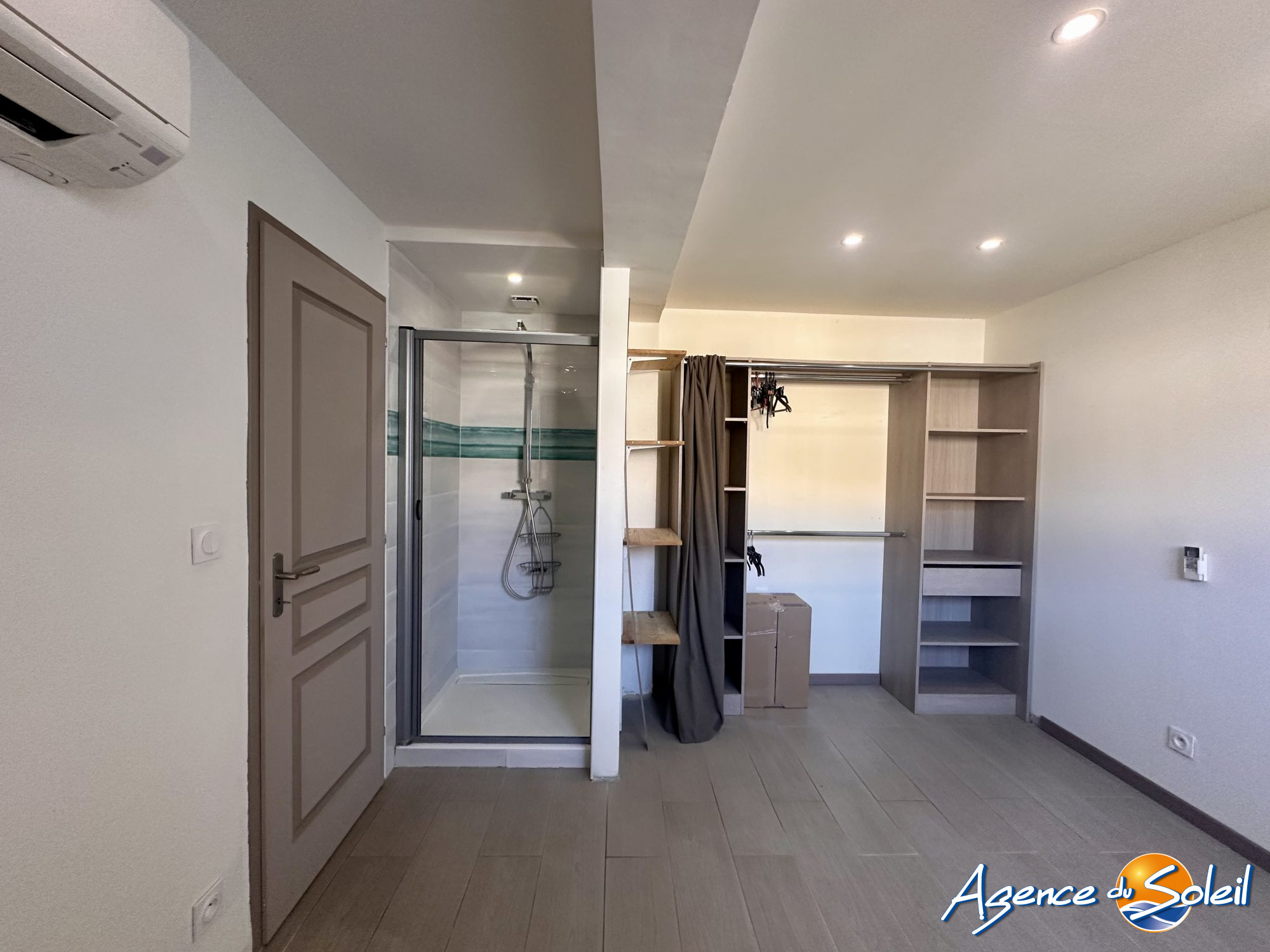 À seulement 5 minutes des plages, venez découvrir cette charmante villa 2 faces, idéalement située au coeur d'un quartier calme, à proximité immédiate de toutes les commodités : écoles, commerces, services. Édifiée sur deux niveaux et entièrement climatisée, elle offre de beaux volumes et un agencement fonctionnel. Au rez-de-chaussée, vous apprécierez une pièce de vie lumineuse avec cuisine ouverte entièrement équipée, donnant accès à une agréable terrasse exposée plein sud avec piscine. Une chambre avec douche, un WC séparé avec lave-mains et espace buanderie complètent ce niveau.