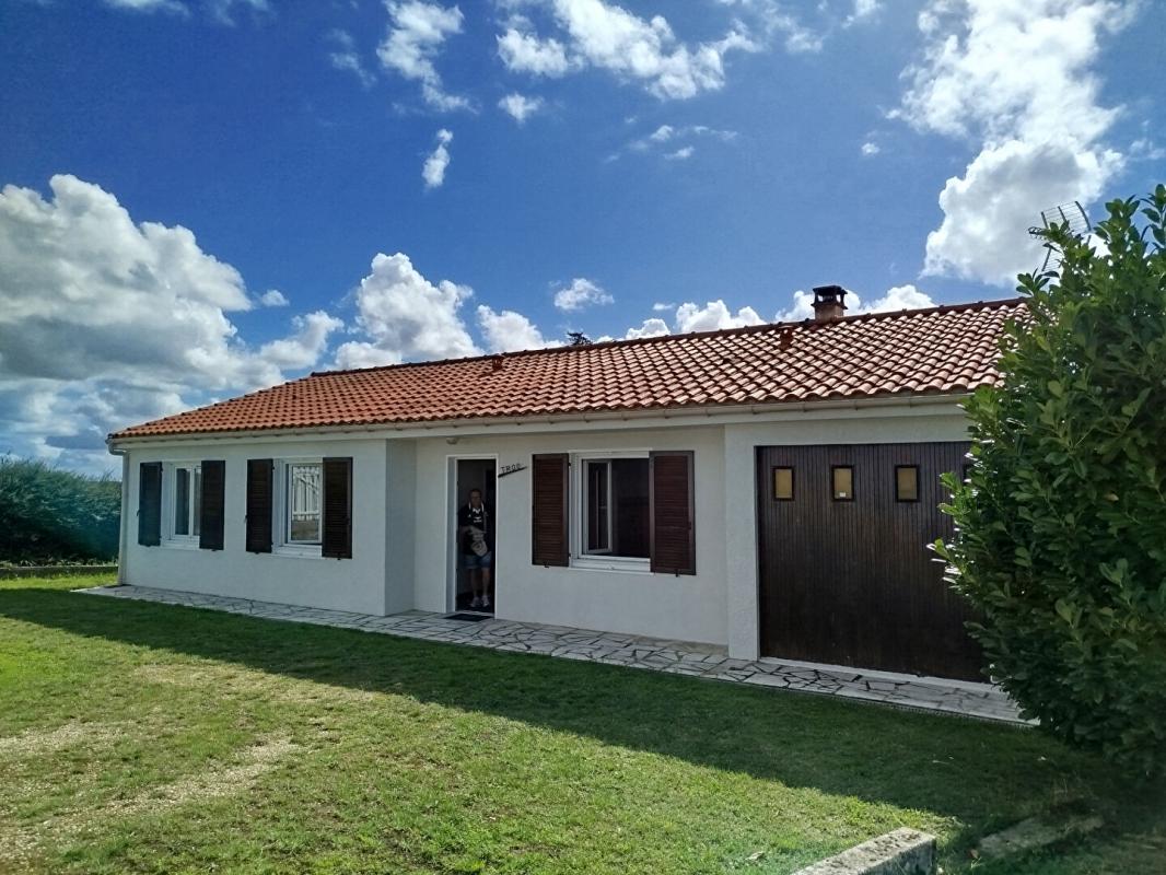 Sur un beau terrain de 1000 m² non mitoyen, maison de type 5 comprenant entrée, cuisine, arrière cuisine, pièce de vie avec insert, bureau, couloir desservant trois chambres, salle d'eau et wc indépendant.