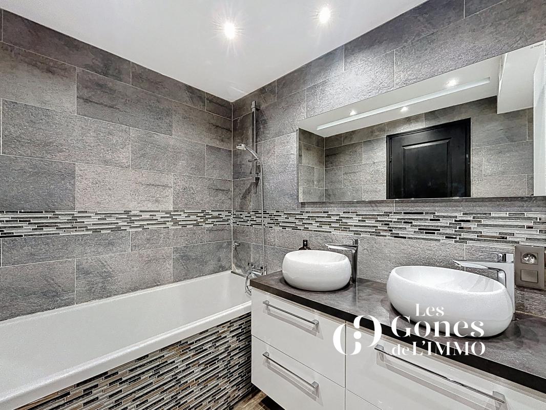 L'espace nuit comprend trois chambres d'environ 15 m2, toutes équipées de rangements intégrés, ainsi qu'une salle de bain avec double vasque et WC. La chambre située à l'étage supérieur bénéficie, quant à elle, de sa propre salle d'eau privative.