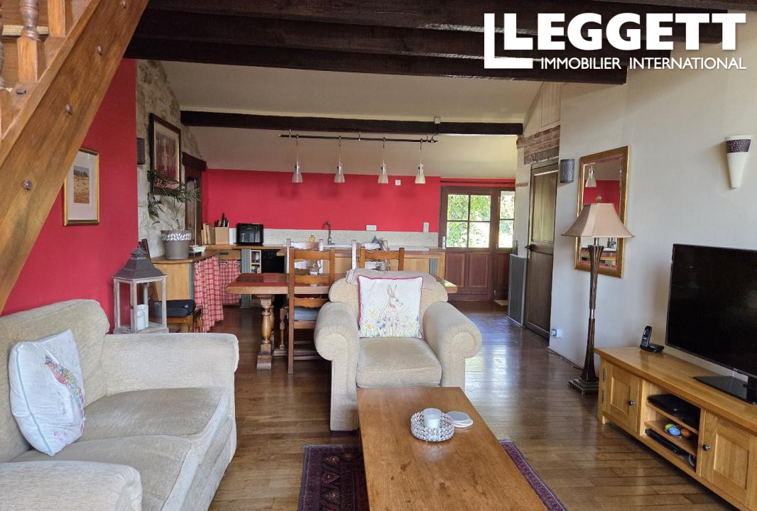 La maison principale (132 m²) dispose d'une grande cuisine/salle à manger de 38 m² avec poêle à bois, de deux chambres, d'une mezzanine et de deux salles de bain.
