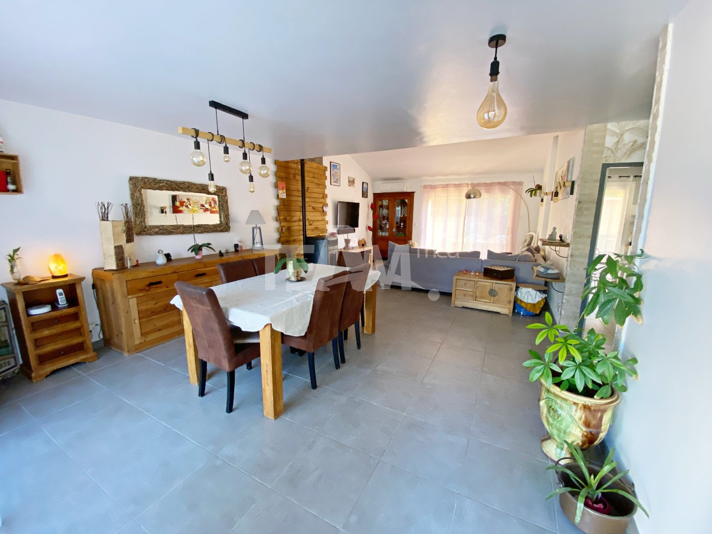 Elle offre un grand séjour donnant d'un côté sur une terrasse et la piscine, de l'autre côté sur une deuxième terrasse avec cuisine d'été.