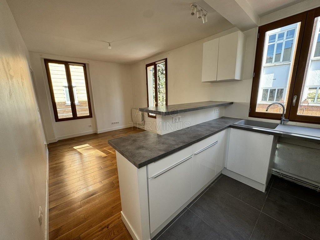 Idéalement situé entre le marché et le centre-ville d'ENGHIEN LES BAINS, dans petit immeuble, appartement en étage offrant entrée, séjour avec cuisine ouverte, chambre, salle d'eau, wc séparés. Appartement entièrement rénové, parquet, double vitrage. Faible taxe foncière, idéal primo accédant ou investisseur.