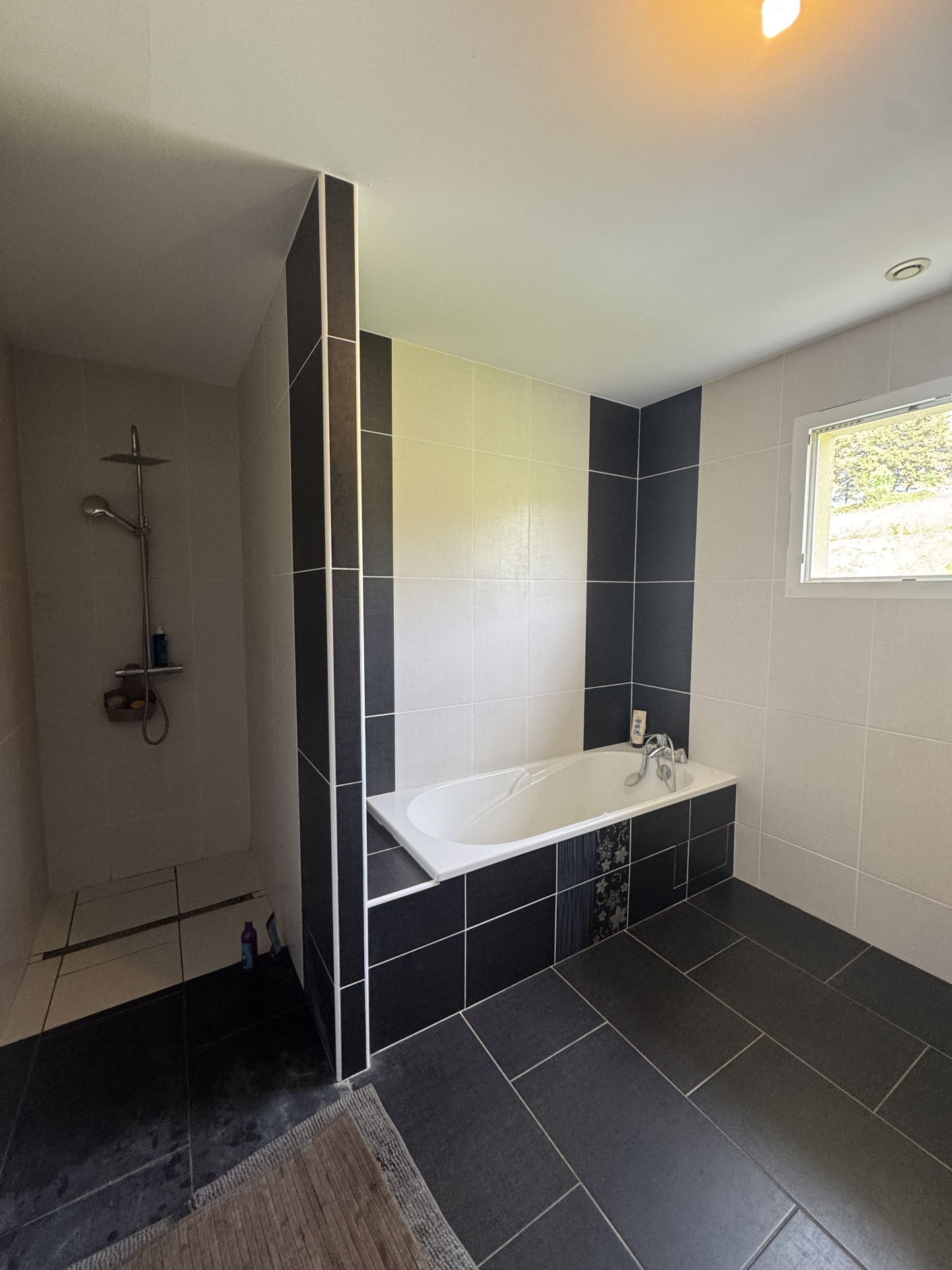 Elle se compose d'une belle pièce de vie lumineuse regroupant salon et séjour, d'une cuisine aménagée et équipée ouverte sur l'espace de vie, ainsi que d'un cellier attenant. Côté nuit, vous trouverez trois chambres confortables, une salle de bains fonctionnelle avec à la fois une douche et une baignoire, ainsi que des WC indépendants.
