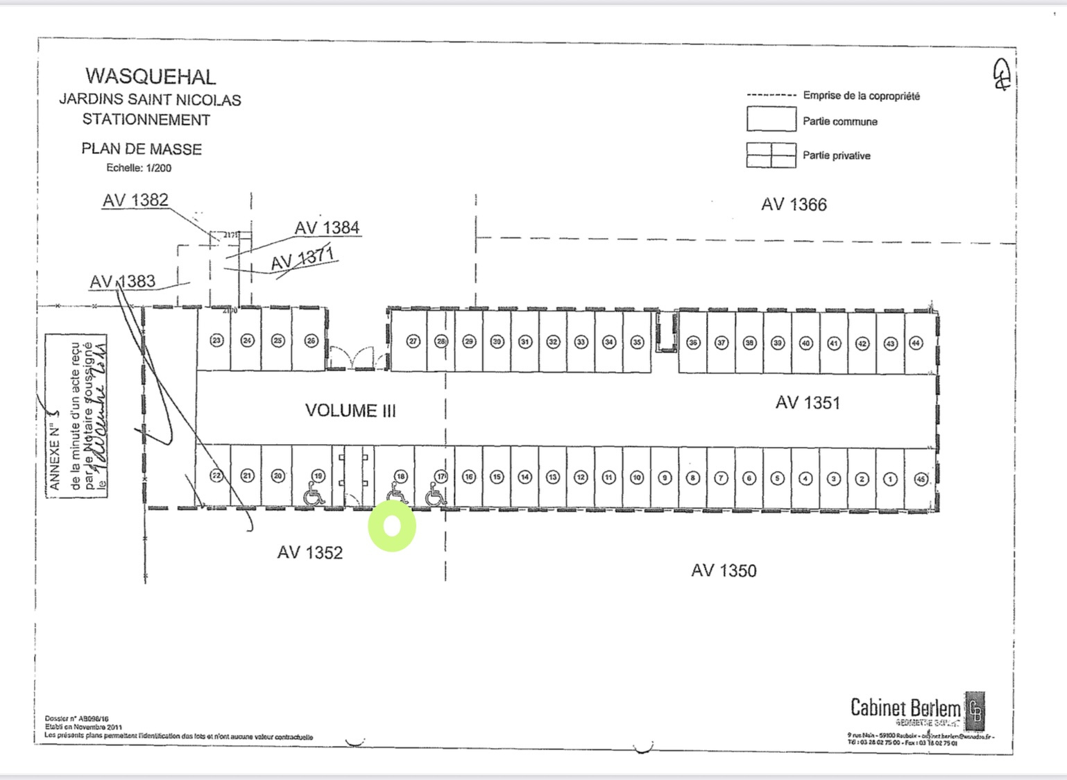 A vendre place de parking située rue André Hantson résidences Jardin Saint Nicolas à WASQUEHAL.