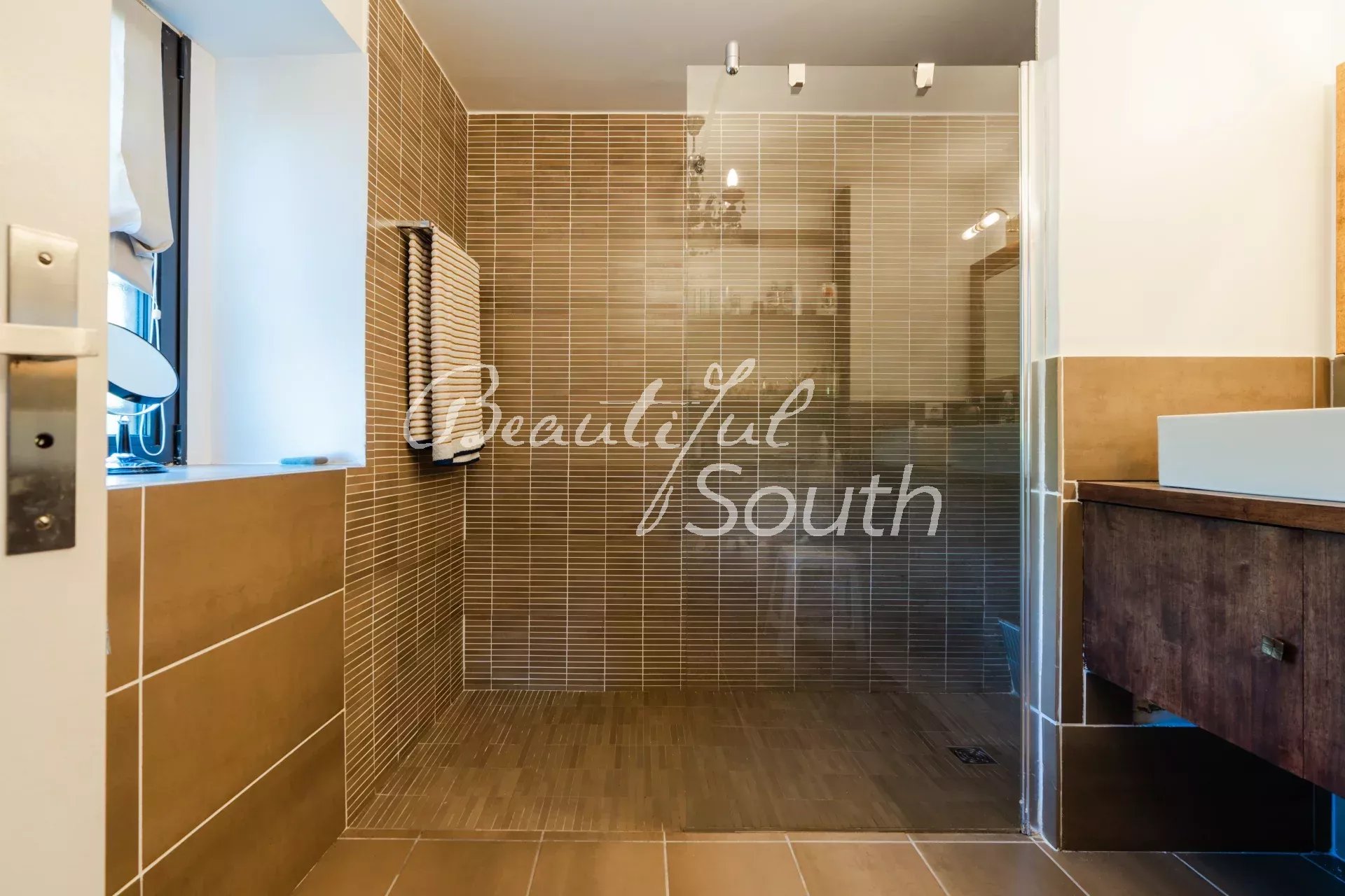 Les prestations sont à la hauteur : isolation thermique et phonique renforcée, climatisation centrale dans les deux suites, alarme, portail motorisé, garage, et possibilité de stationner 3 à 4 véhicules dans la propriété.