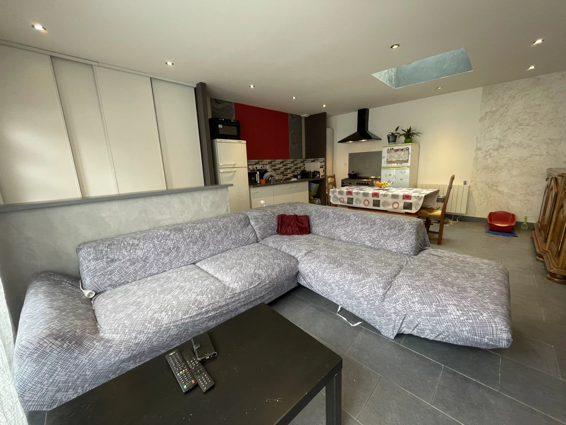 L'appart n°1 de 84 m² offre un séjour-cuisine simple de 42m² avec 2 chbres (10 et 12 m²) + 1 bureau (8 m²) et une belle terrasse.