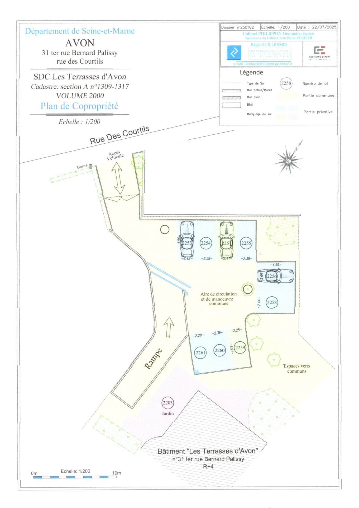 Vous cherchez une solution de stationnement sécurisée et pratique à Avon proche de la gare dans une résidence de standing ? Ne cherchez plus ! Nous vous proposons un **parking extérieur idéalement situé**, au prix exceptionnel de **8 000 euros FAI**. Charges annuelle de copropriété 152,20 euros - nombre de lots 69 - lots à usage d'habitation 26 - nombre de bâtiment 1