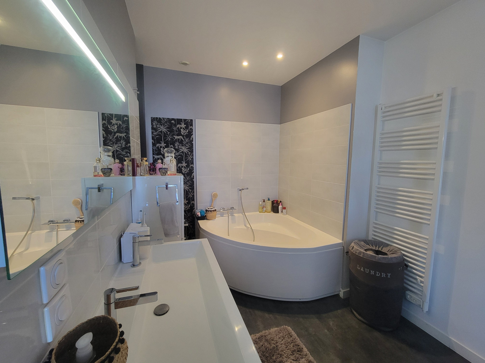Un couloir dessert les wc séparés et la partie nuit composée d'une chambre de 9,30m2 et sa salle d'eau de près de 2m2 et d'une suite parentale de 22m2 avec son dressing, et sa salle de bain ouverte. Chaque chambre dispose de son balconnet.
