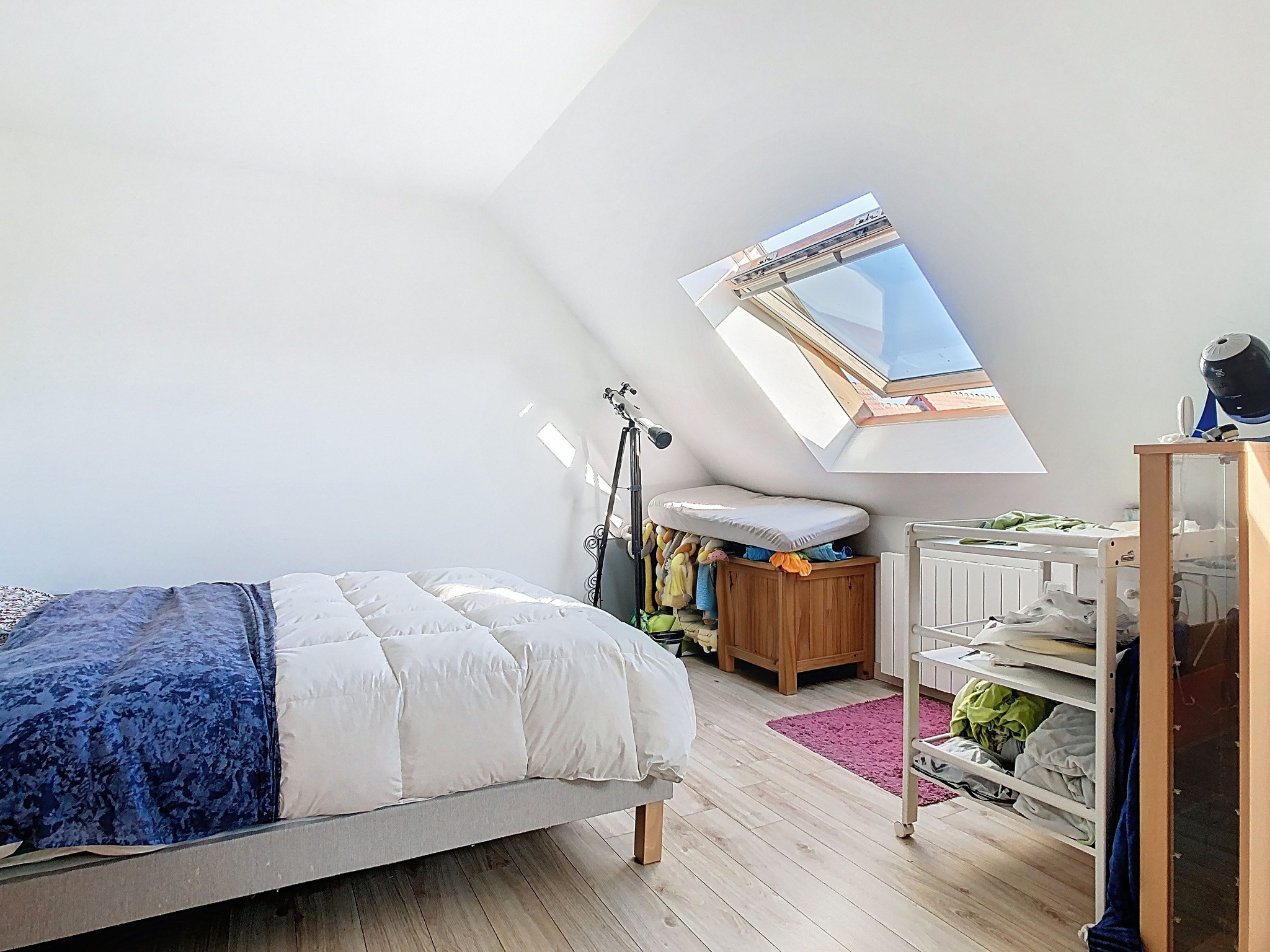 Elle se compose au rez de chaussée d'une entrée, d'un séjour/salon avec cuisne aménagée de 43 m2, d'un bureau (possibilité salle d'eau) et d'un WC. A l'étage un palier dessert 3 chambres, une salle de bains avec douche et un WC.