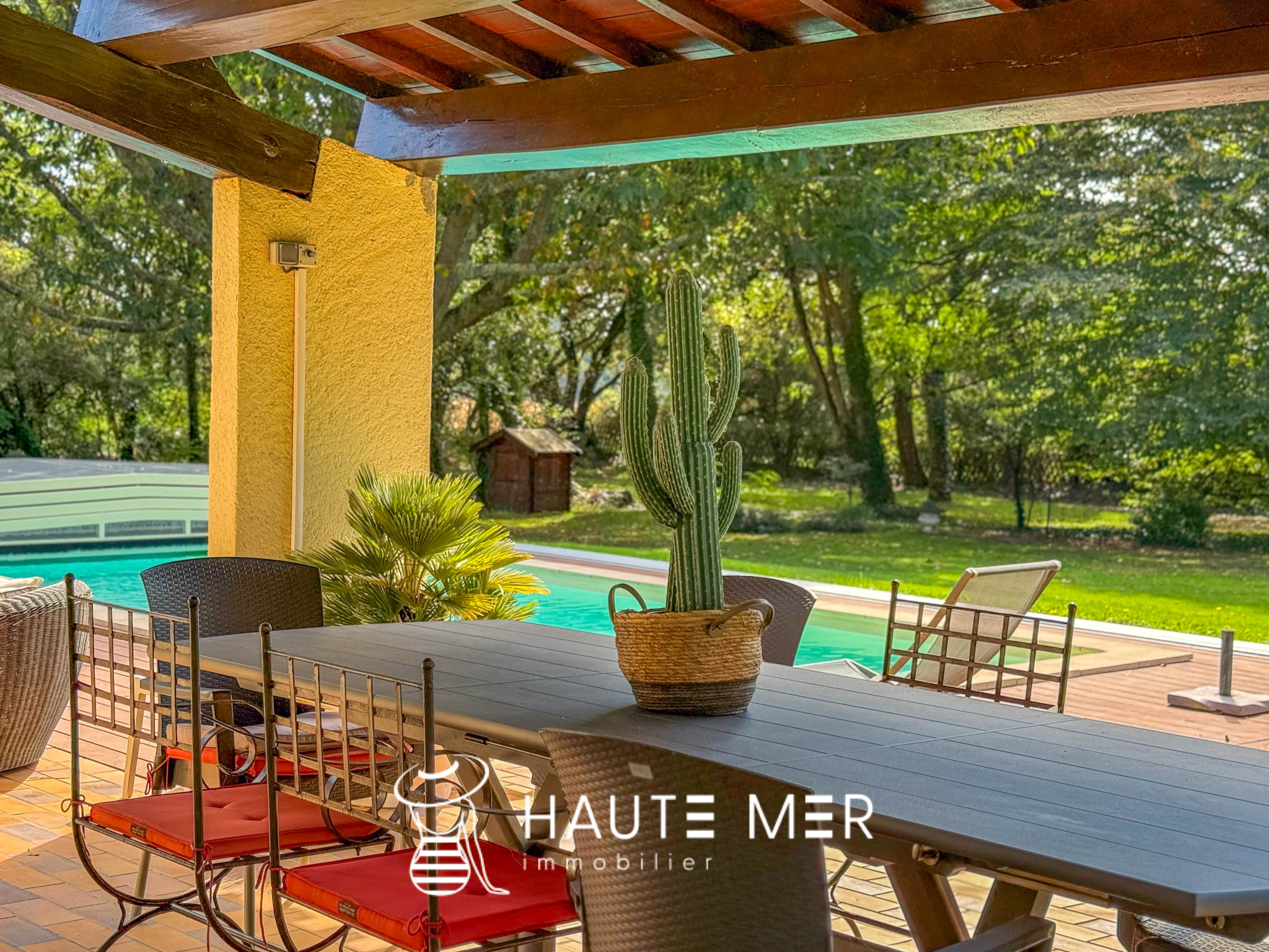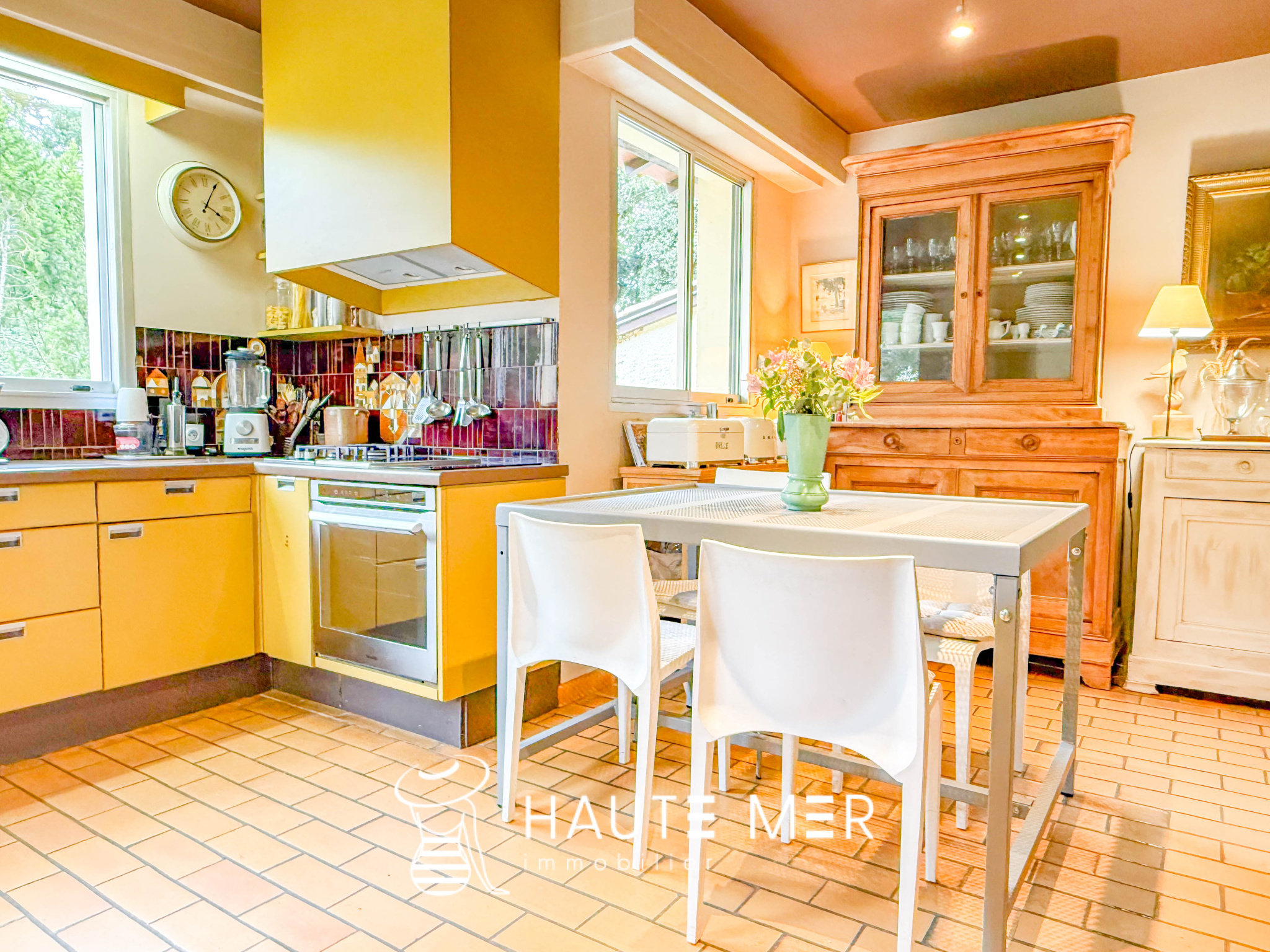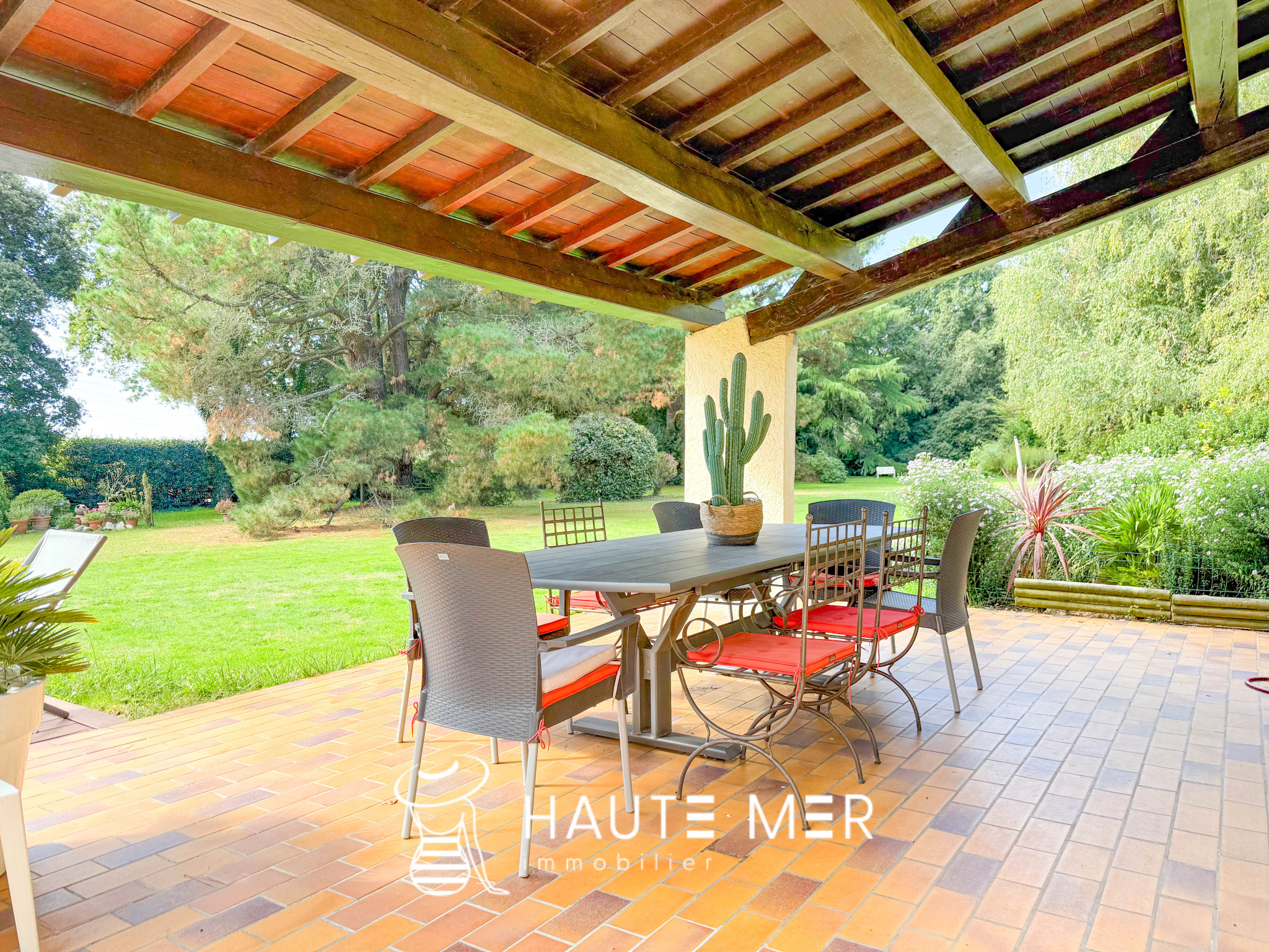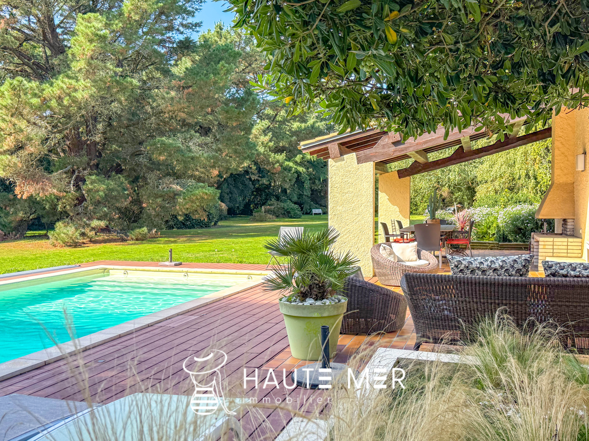 À seulement quelques minutes des plages et des commerces, cette demeure de 214 m2 se déploie au coeur d'un parc paysager de plus d'un hectare, agrémenté d'une piscine. Un écrin de verdure, comme un havre de quiétude. La pièce de vie, généreuse et lumineuse, s'étend sur près de 70 m2. Cheminée et poêle y créent une atmosphère chaleureuse. La cuisine, vaste et conviviale, s'ouvre naturellement sur les terrasses, dont l'une couverte avec barbecue, pour savourer l'art de vivre en extérieur. De plain-pied, une aile intime accueille une suite parentale avec dressing, chambre et salle de bains. Une seconde chambre, avec rangements et salle d'eau, complète cet espace. Deux chambres supplémentaires disposent chacune de leur point d'eau, et partagent une salle de douche et des WC indépendants. Un salon avec poêle et accès direct au jardin vient parfaire l'agencement, idéal pour accueillir famille et amis. Pour le confort de ses futurs occupants, la villa dispose d'un double garage, d'une lingerie et d'une chaufferie équipée d'une double pompe à chaleur, une cave et un appentis pour le jardin. Un lieu rare, loin du tumulte urbain et au coeur de la nature retrouvez toutes nos annonces sur www.hautemerimmobilier.com