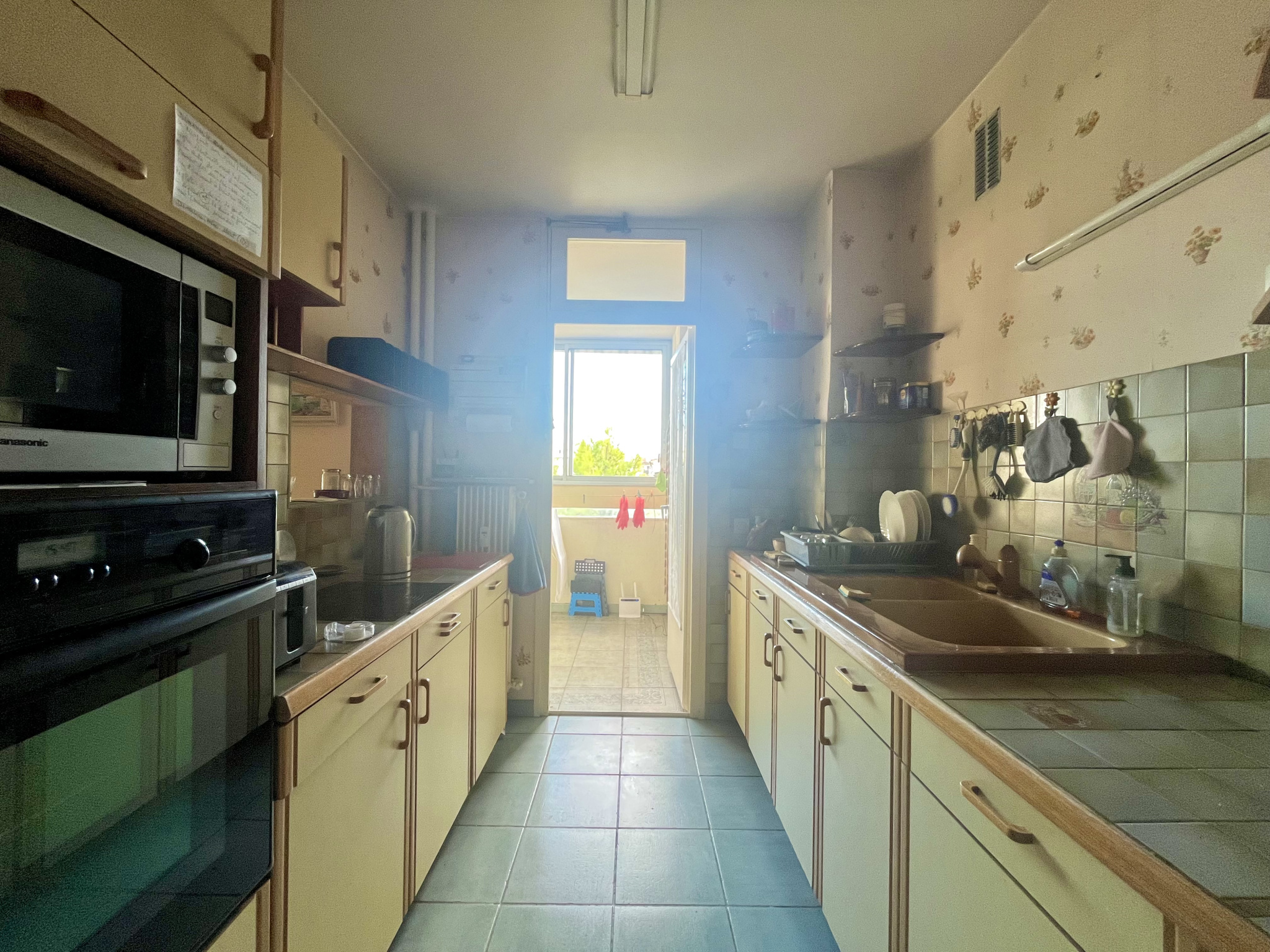 TOULON CLARET - Appartement T4 de 75m2 dans une résidence fermée et sécurisée d'un quartier recherché de Toulon, 8ème étage avec une terrasse de 12m2 et une vue dégagée, il se compose : d'une belle pièce de vie, une cuisine indépendante, une salle de bains et WC séparé ainsi que 2 chambres, possibilité 3. Appartement lumineux et traversant Ouest / Est. Travaux à prévoir. Une cave et un garage complètent ce bien.