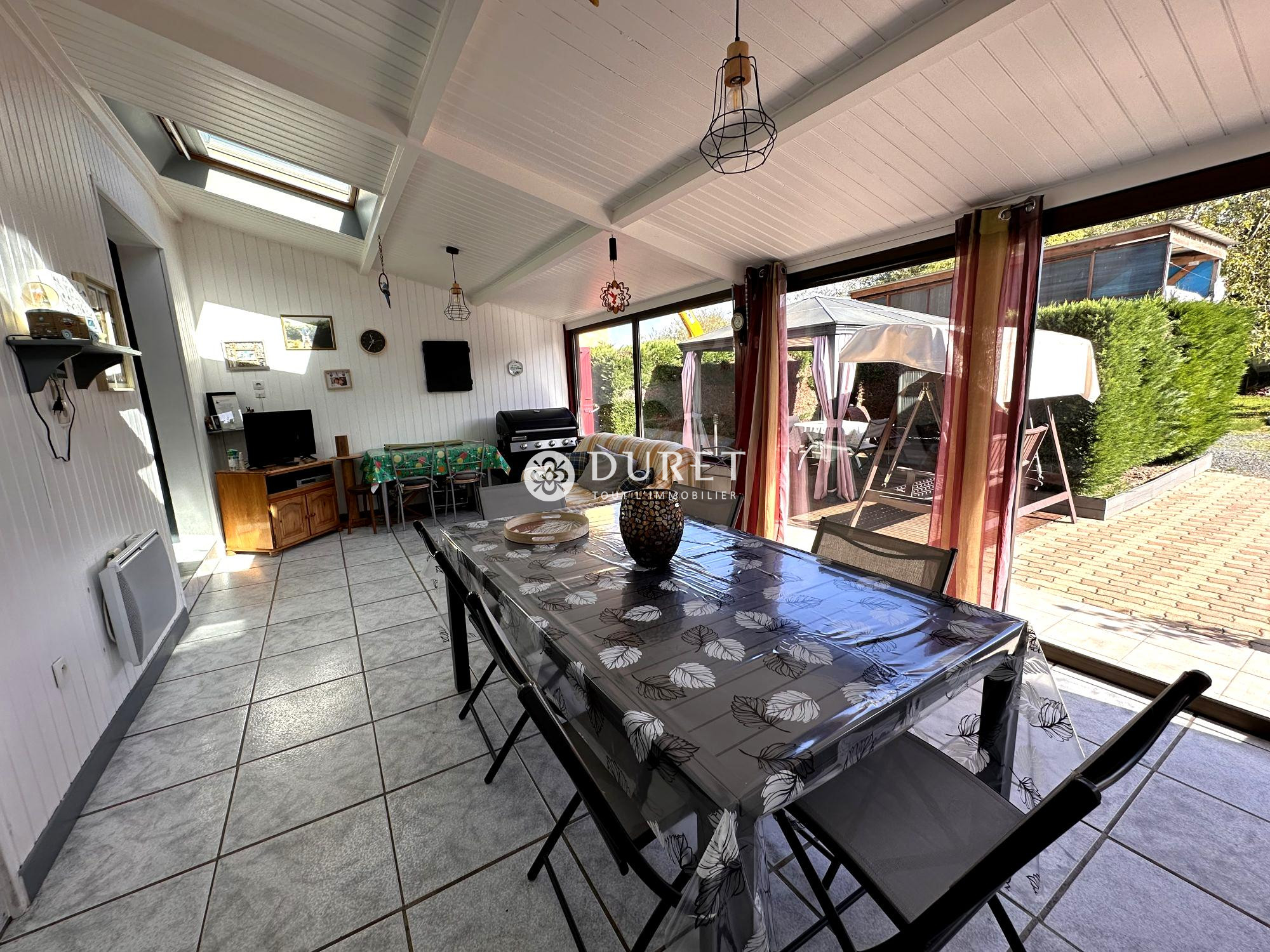 L'espace de vie chaleureux se compose d'un séjour lumineux avec cheminée, d'une cuisine indépendante aménagée et équipée, prolongés par un salon d'agrément maçonné ouvrant sur la terrasse et le jardin.