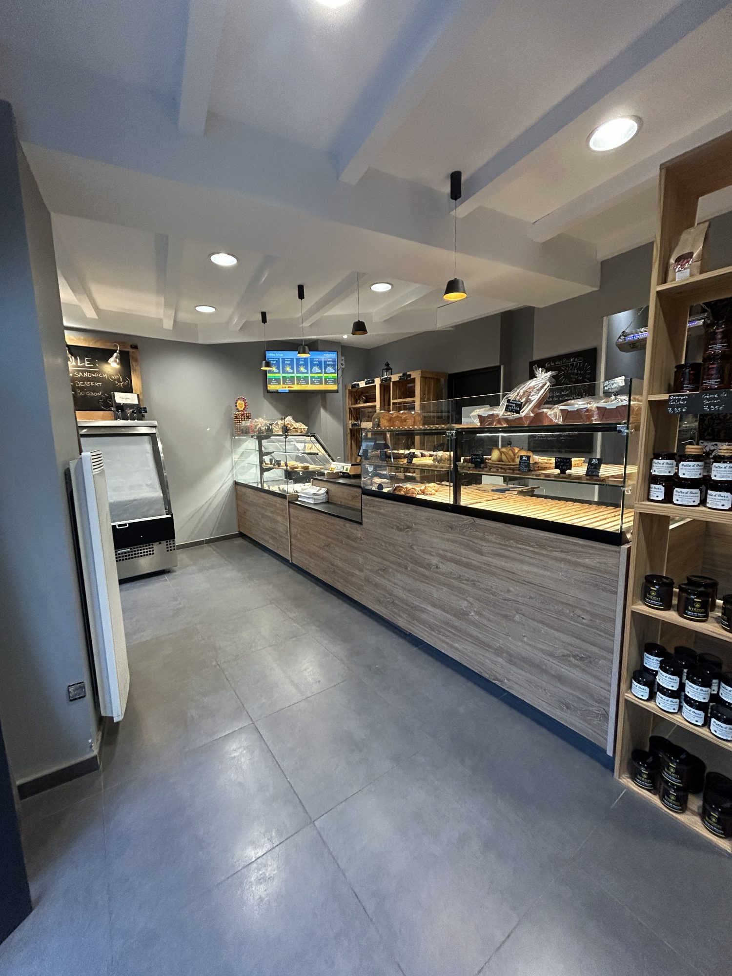Premier étage : un local côté nord d'env. 42 m² (façade sur Place de la République) servant de fournil et un local côté sud d'env. 24 m² servant de laboratoire (2 pièces donnant sur courette).