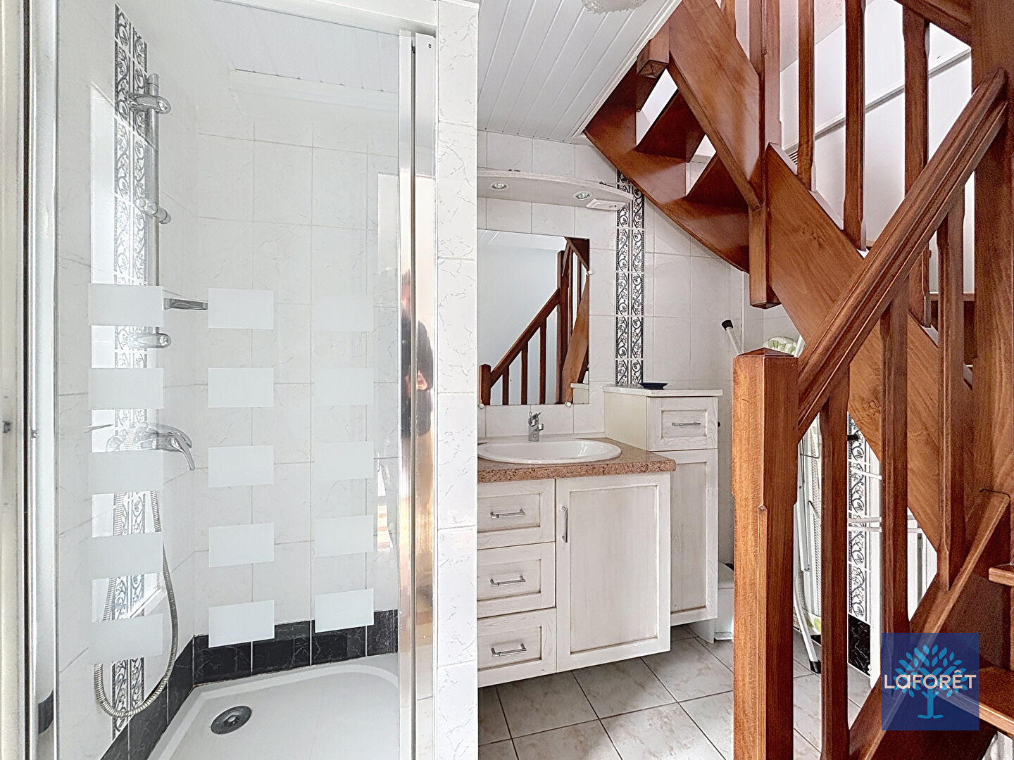 Sur deux niveaux elle propose au rez de chaussée une entrée, une pièce de vie donnant sur une cuisine lumineuse et ouverte vers l'extérieur, une chambre spacieuse, une salle d'eau, un coin buanderie et un wc indépendant. A l'étage, une pièce servant de chambre.