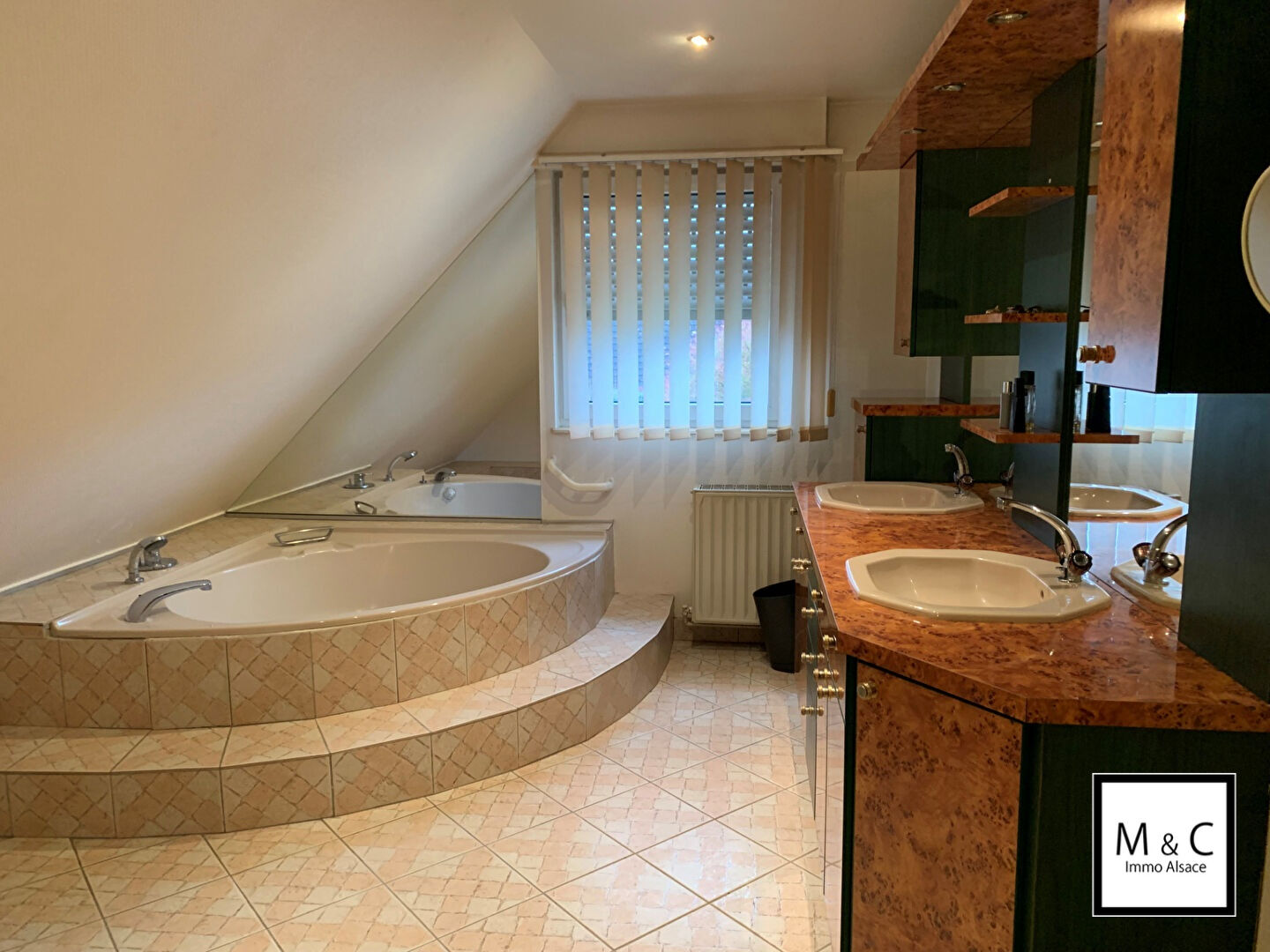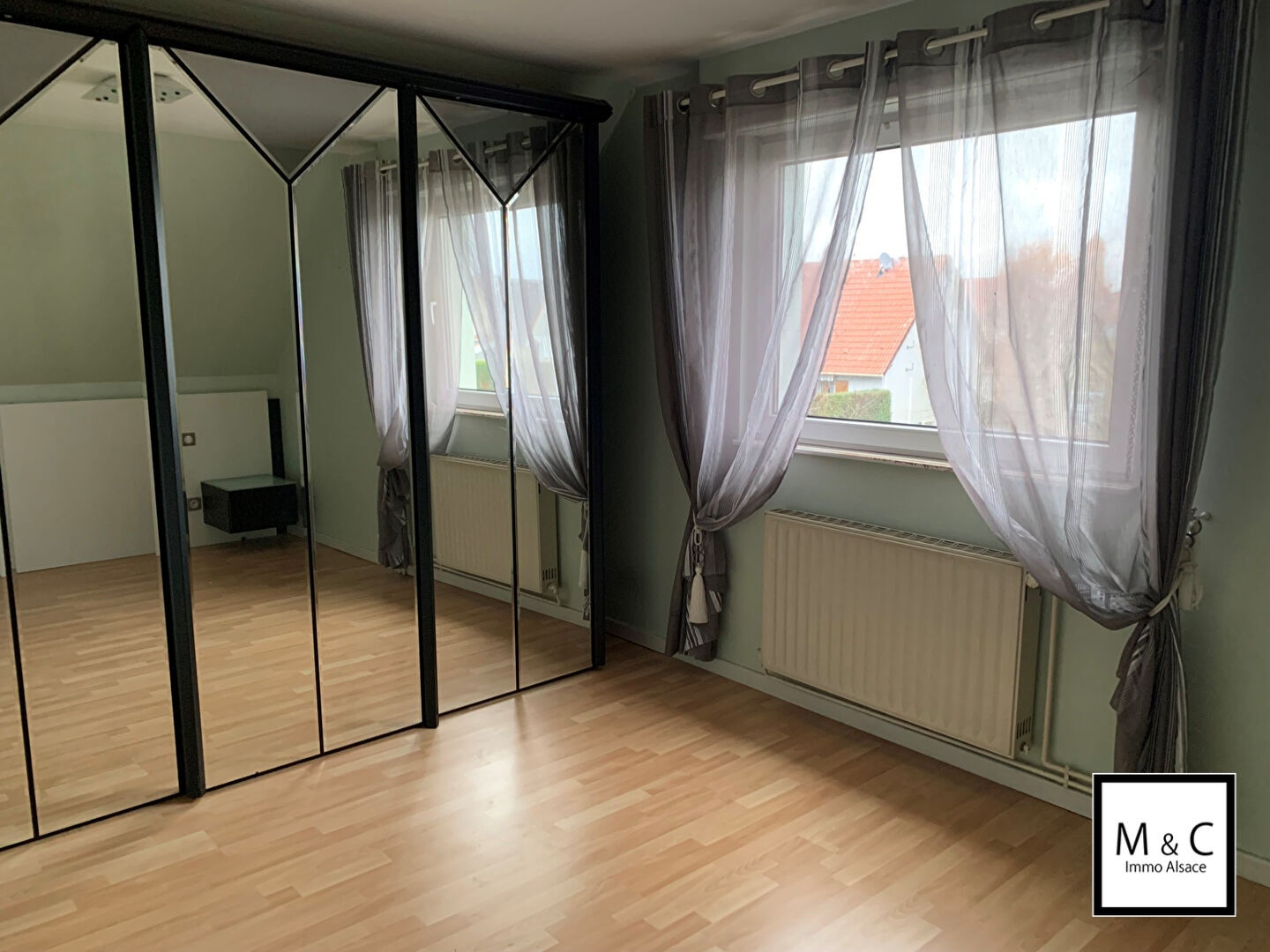 La maison d'une surface habitable de 105 m² se compose d'une cuisine équipée avec un espace repas, un salon séjour très lumineux agrémenté d'une cheminée à bois avec son balcon de 9m² et sa terrasse d'environ 25m². L'entrée donne accès aux toilettes avec lave-mains et au cellier.