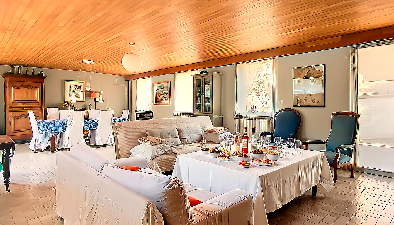 Vaste Séjour de plus de 50 m² : Une pièce de vie spectaculaire, baignée de lumière, avec une cheminée à insert créant une atmosphère chaleureuse et conviviale. Son volume généreux est parfait pour accueillir famille et amis.