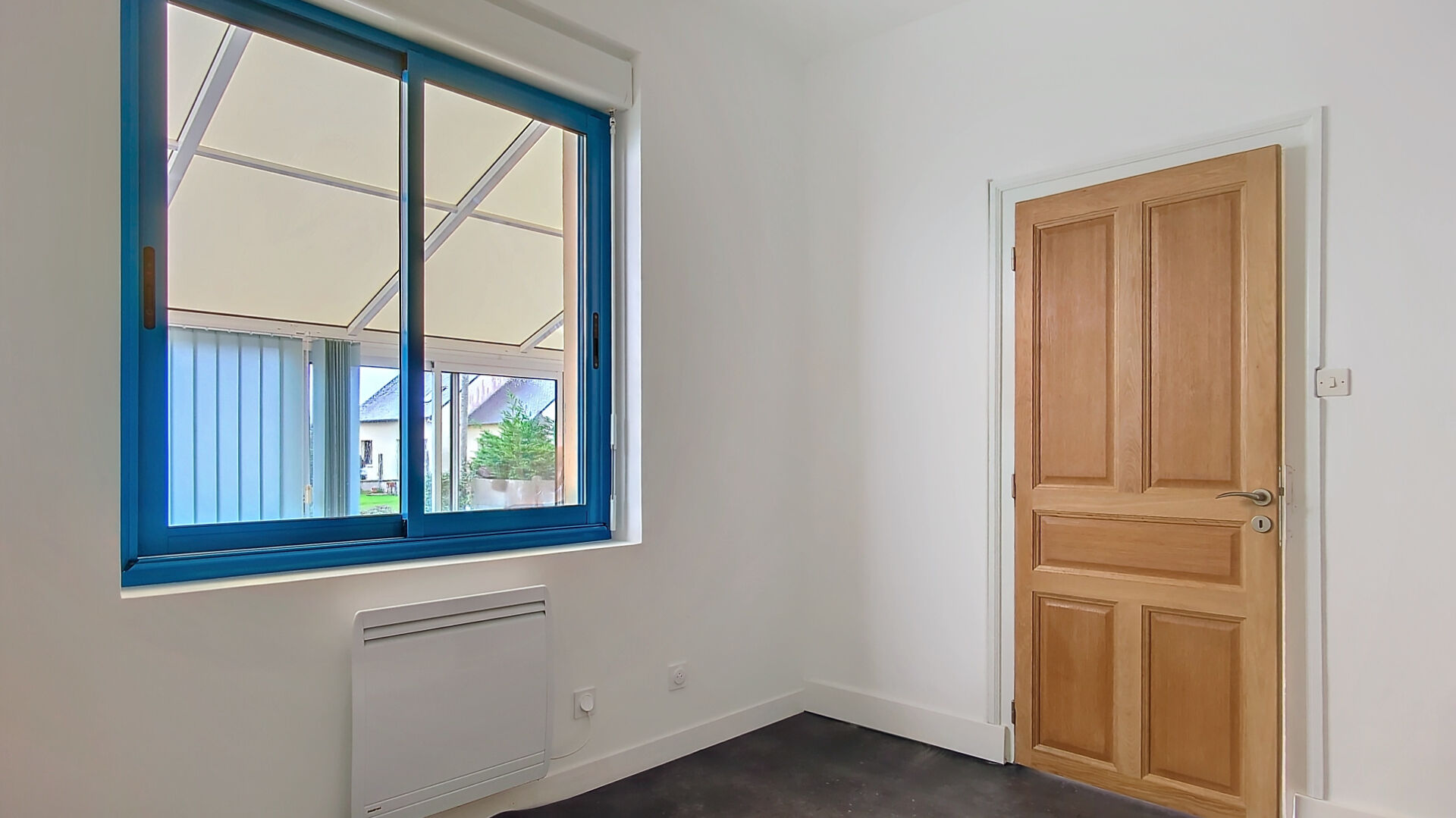 Elle se compose au rez de chaussée, d'une pièce de vie avec sa cuisine aménagée, 2 chambres, une salle d'eau, un WC séparé, un débarras, un grand espace au niveau de l'escalier pouvant servir de bureau ou chambre d'appoint.