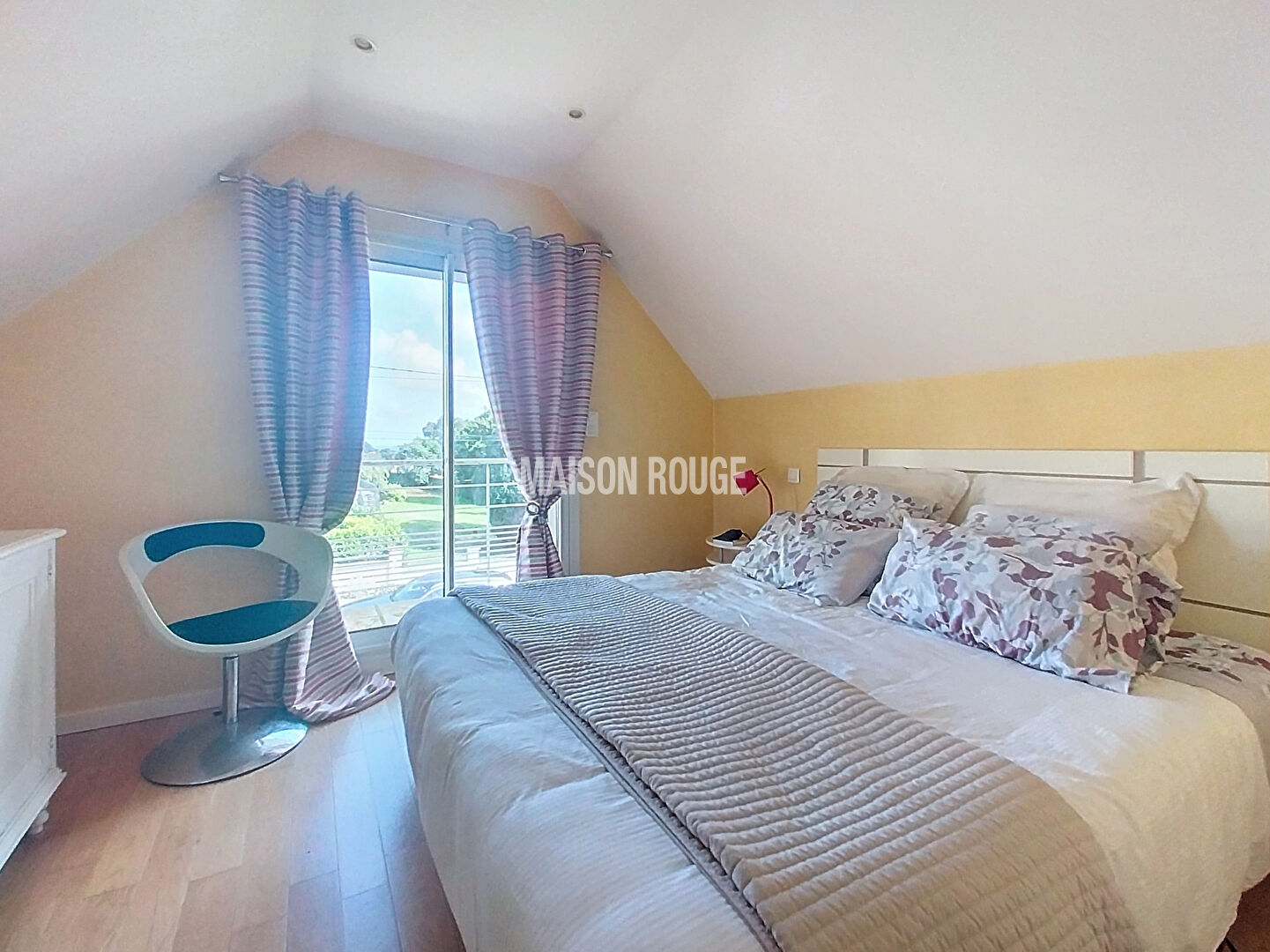 Un escalier vous menant à l'étage, qui vous propose 3 chambres avec balcon sur échappée mer, salle de bains avec douche, WC.
